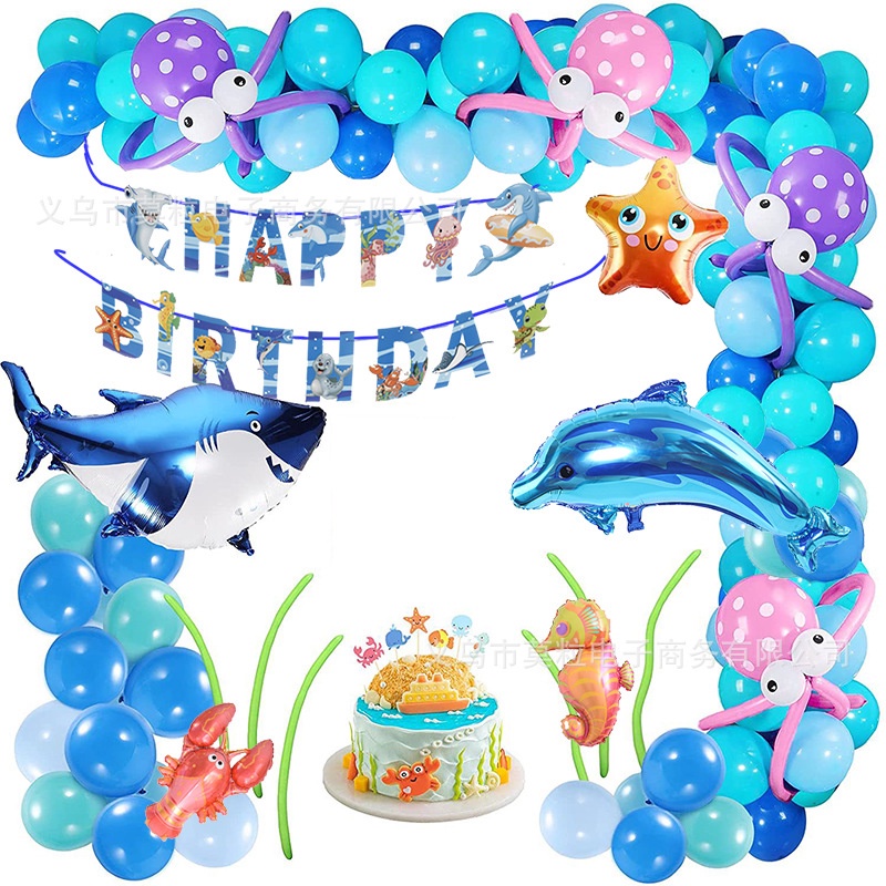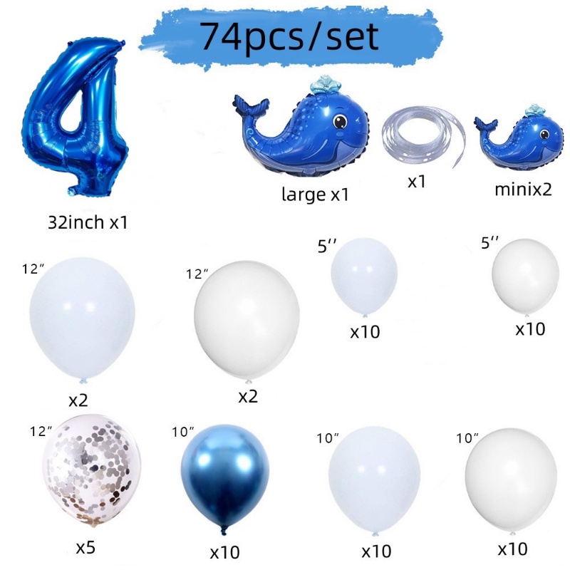 74pcs Blue Ocean Theme Balloons Birthday Party Underwater Dolphin Foil Balloons Latex Blue and White Balloon Garland Baby Shower Children Boys Birthday Theme Decoration