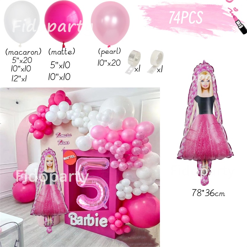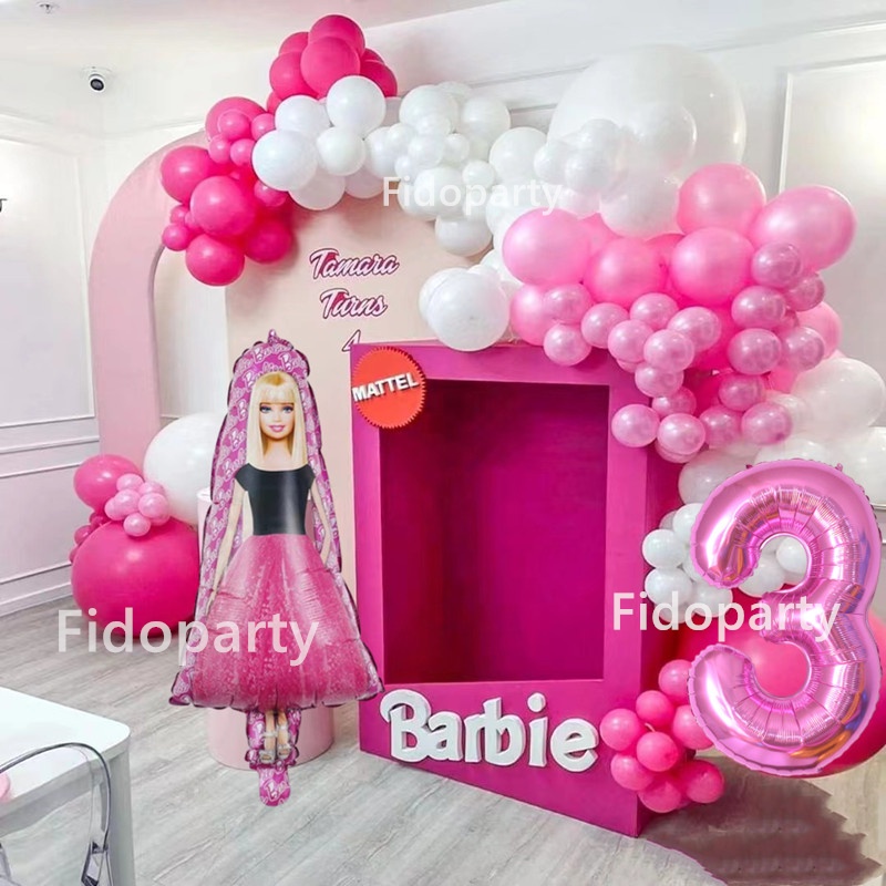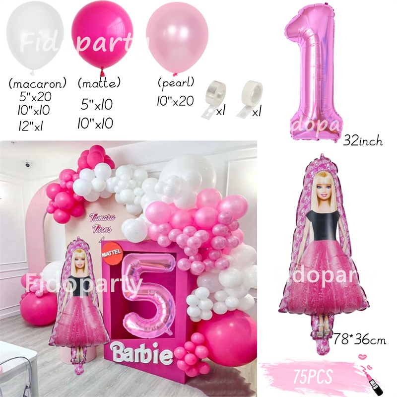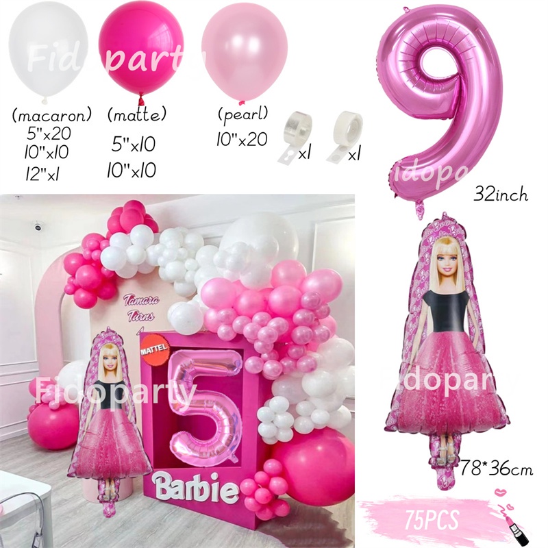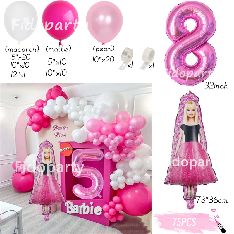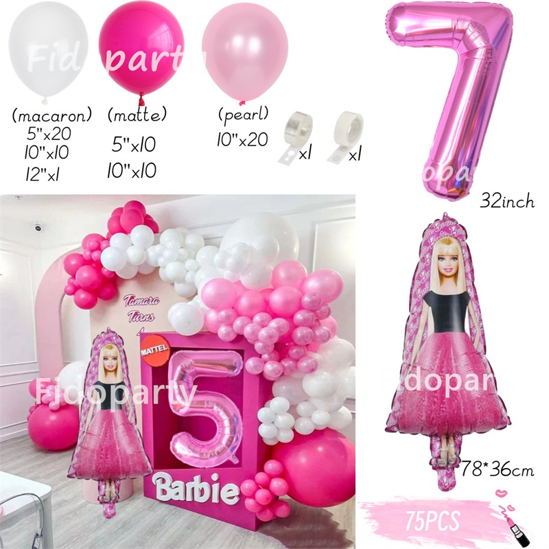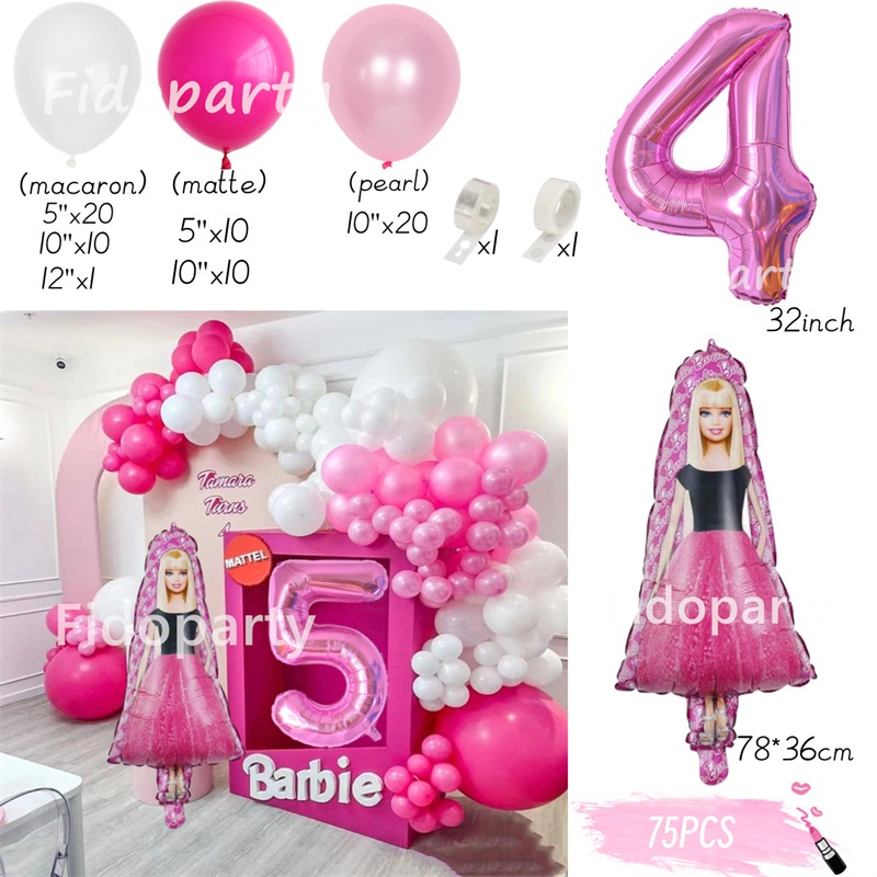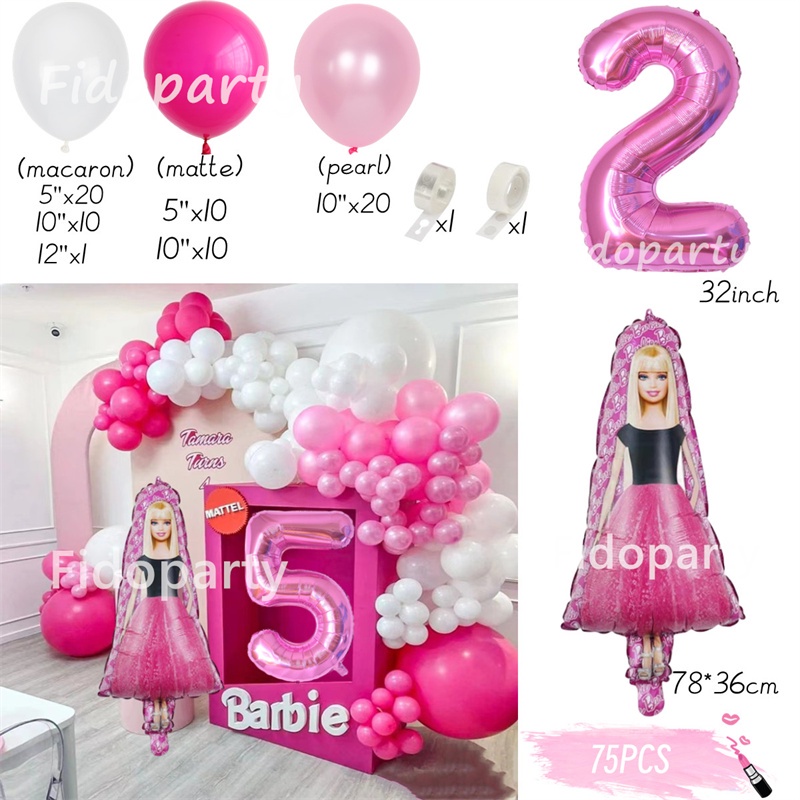 75pcs Pink Barbie Balloons Party Decorations 32inch Pink Number Girl Birthday Baby Shower Princess Theme Party Decorations
