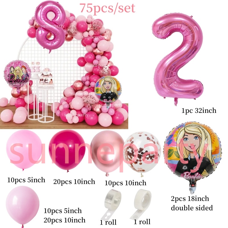 75pcs Pink Barbie Theme Balloons Garland Arch Kit Princess Party Valentine's Day Wedding Birthday decoration Set Party Needs