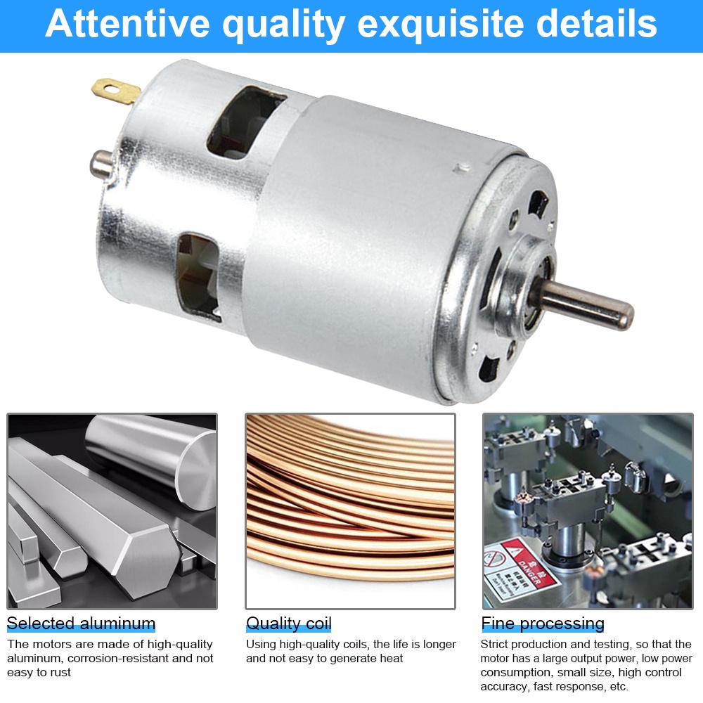 775 DC Motor 12V 3000-15000RPM High Speed Large Torque Motor with Ball Bearing and Fan Blade for DIY Toys / Small Drill / Micro Machine