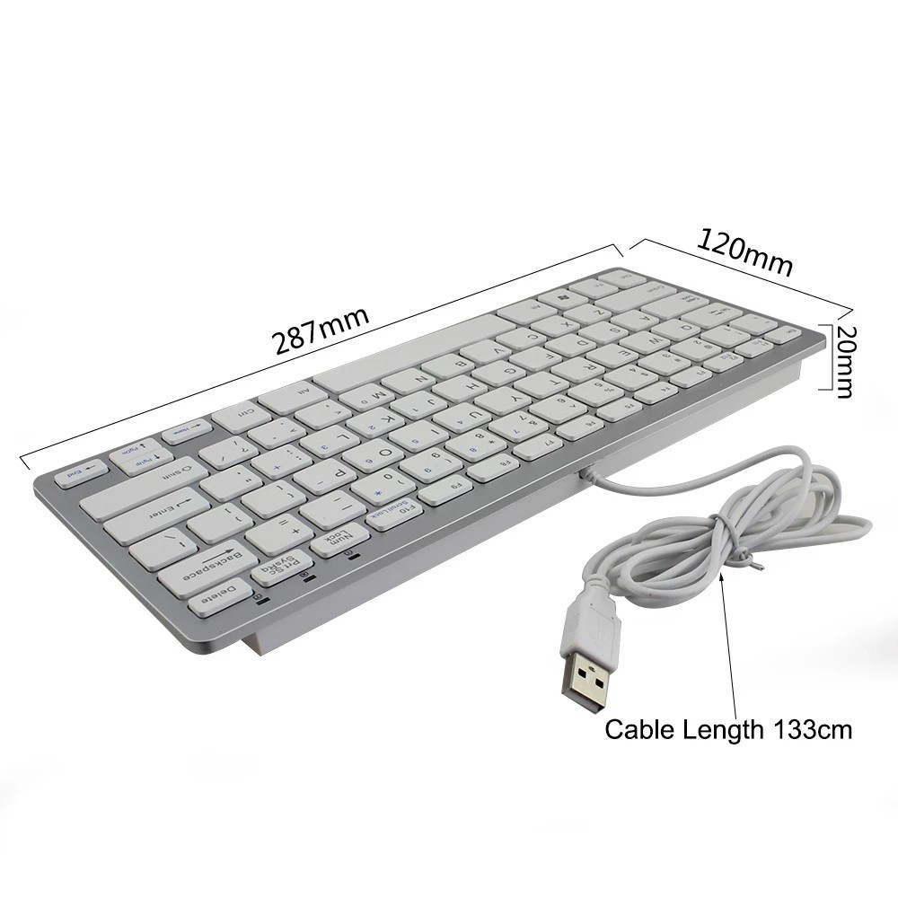 78 Keys Slim Wired Mini Keyboard USB Cable Ergonomic Ultra-Thin English Computer Keypads