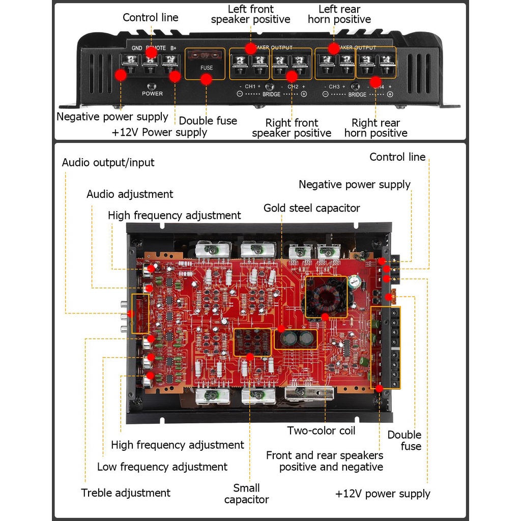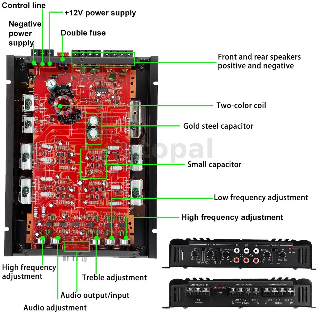 7900W 12V Slim bluetooth Power Amplifier 4 Channel Stereo Surround Speaker Amplifier Support FM Radio