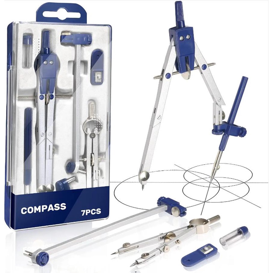 7PCS/Set Professional Drawing Compass Kit Adjustable Metal Geometry Drawing Tools