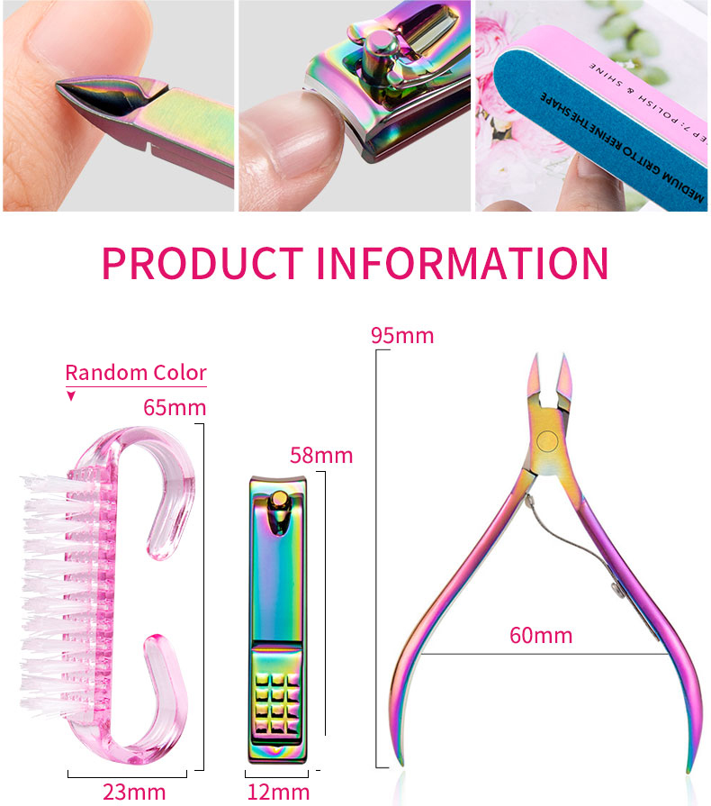 7Pcs Nail Clipper Set Stainless Steel Clean Brush Cuticle Pushers Trimmer Kit