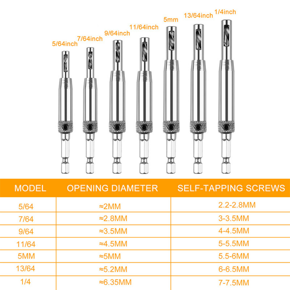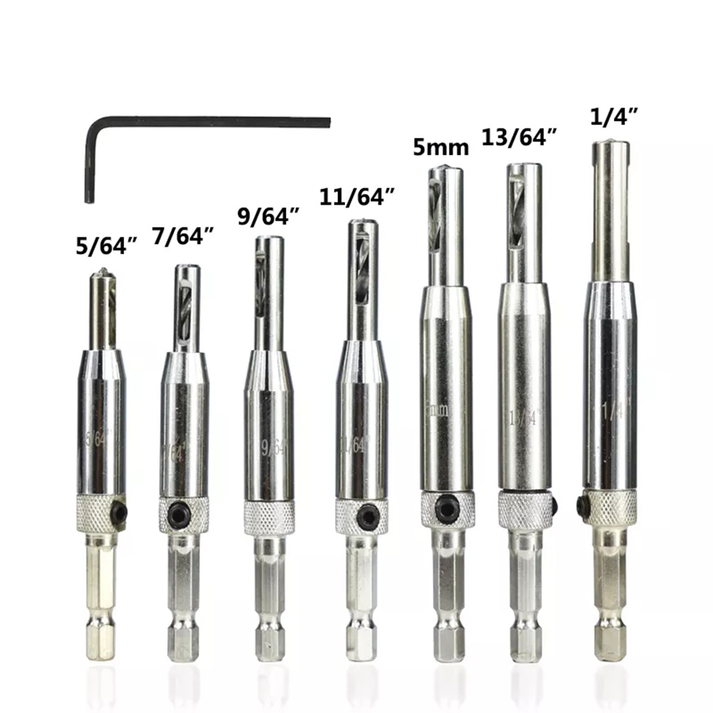 7Pcs Self Centering Hinge Drill Bit Set for Hinges Drawer Guides