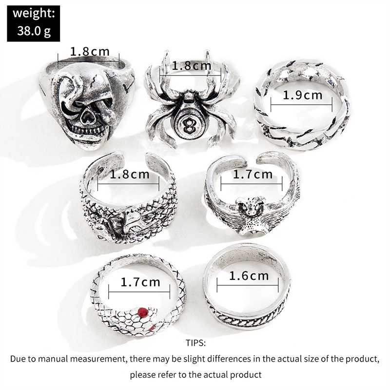 7Pcs/Set Men Ace of Spades Finger Ring Hip Hop Punk Style Width Irregular Ring Couple Fashion Jewelry Unisex