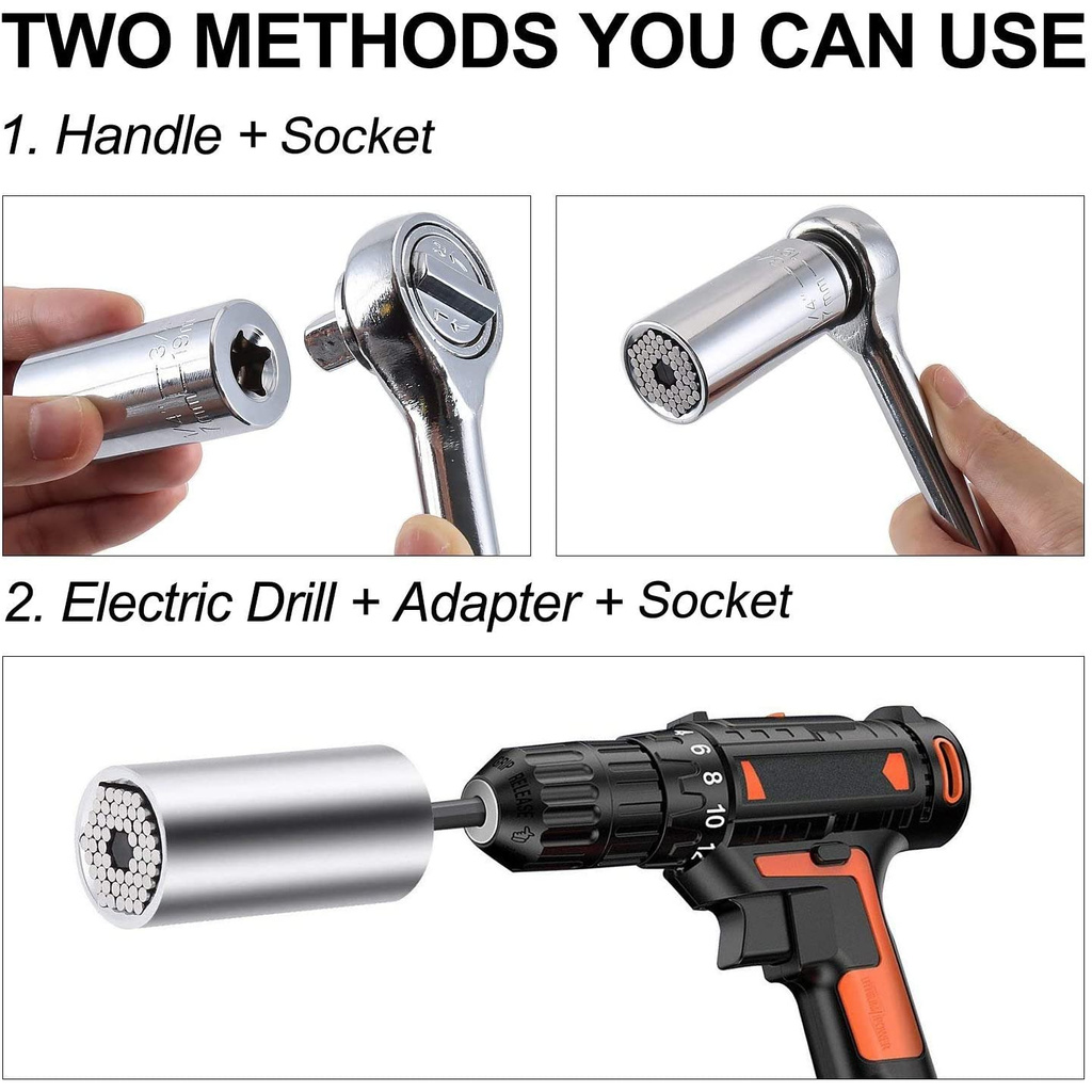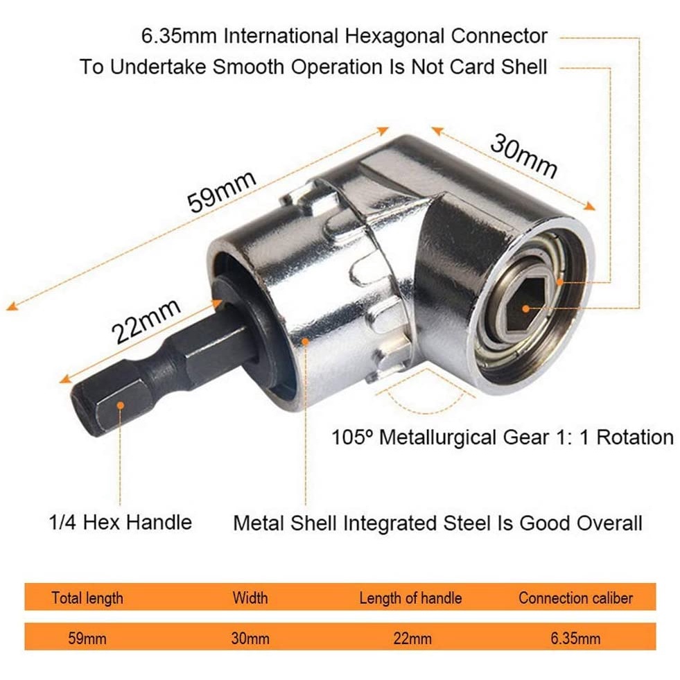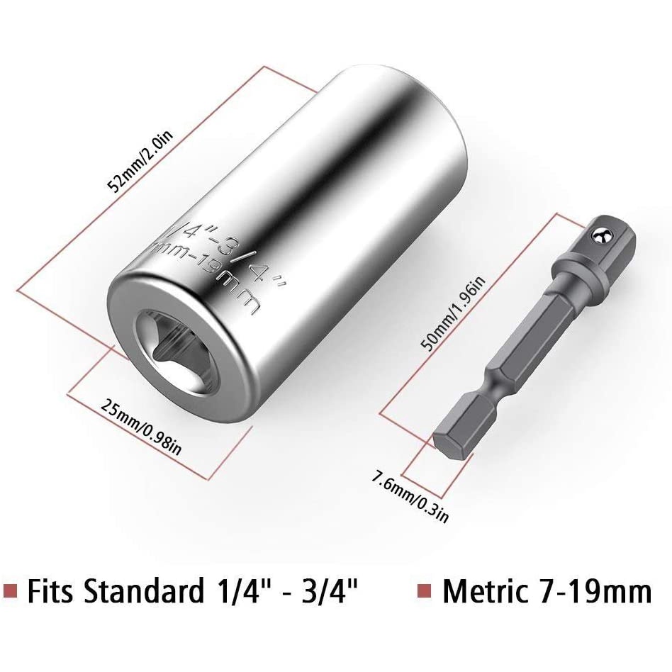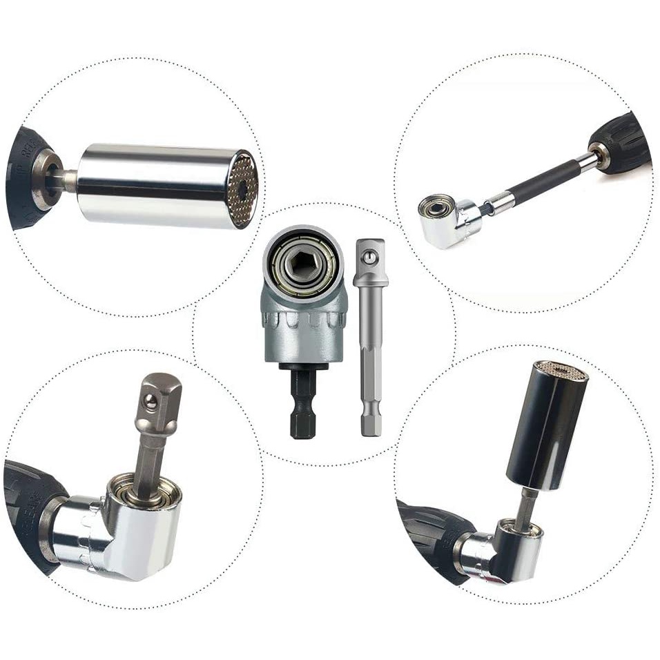 7mm-19mm Ratchet Universal Sockets Metric Wrench Power Drill Adapter Set and 105 Degree Right Angle Extension Power Screwdriver Drill Attachment 1/4" Drive 6mm Hex Magnetic Bit