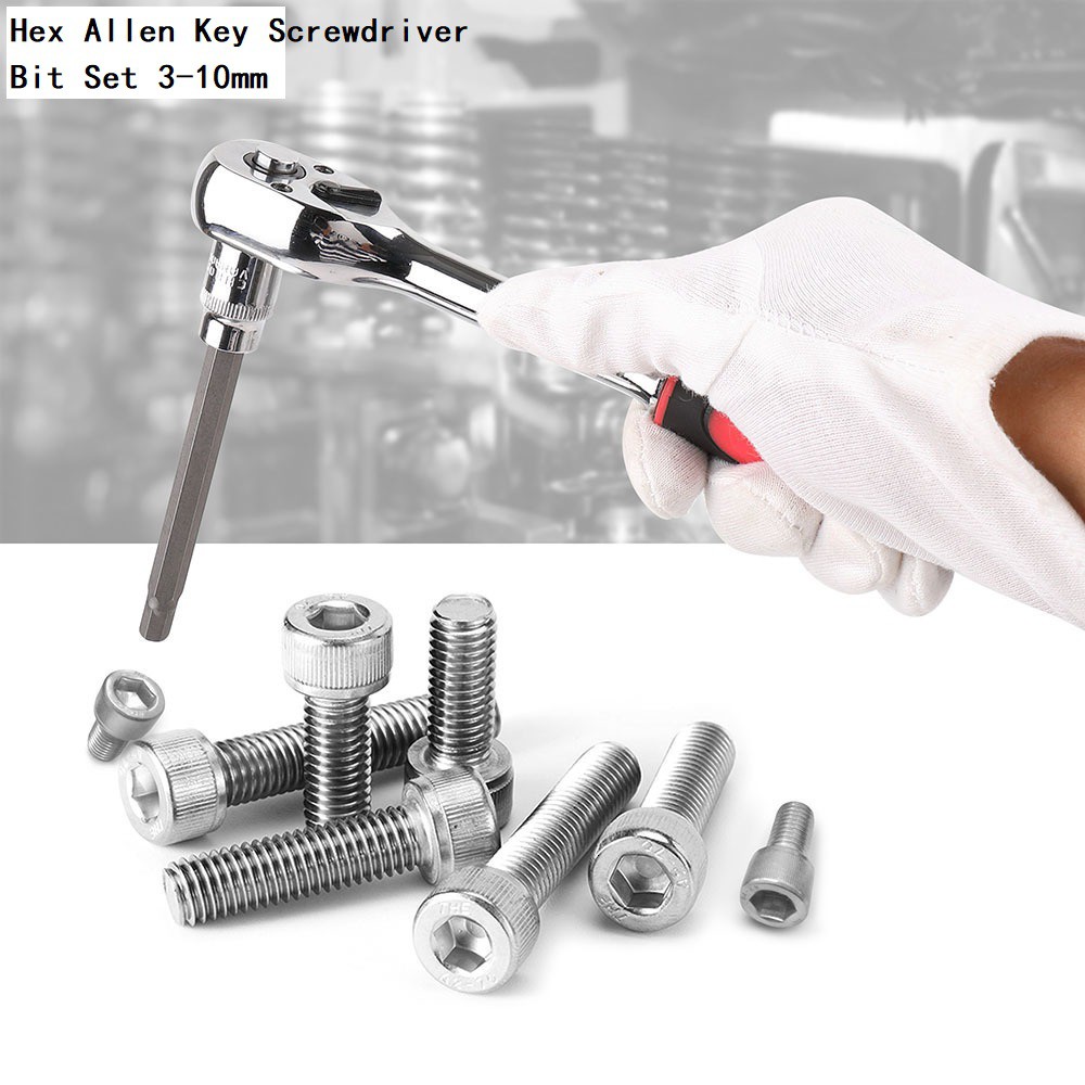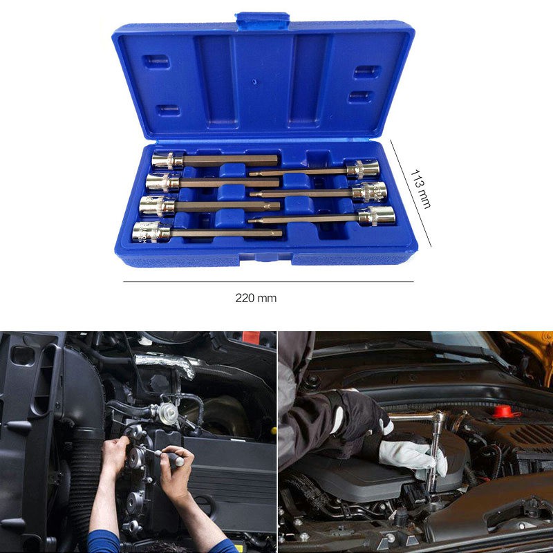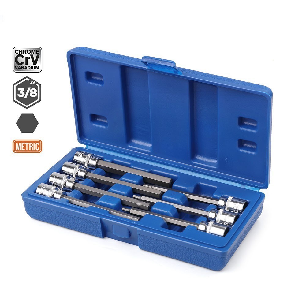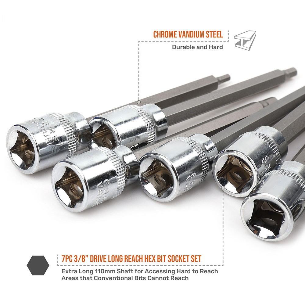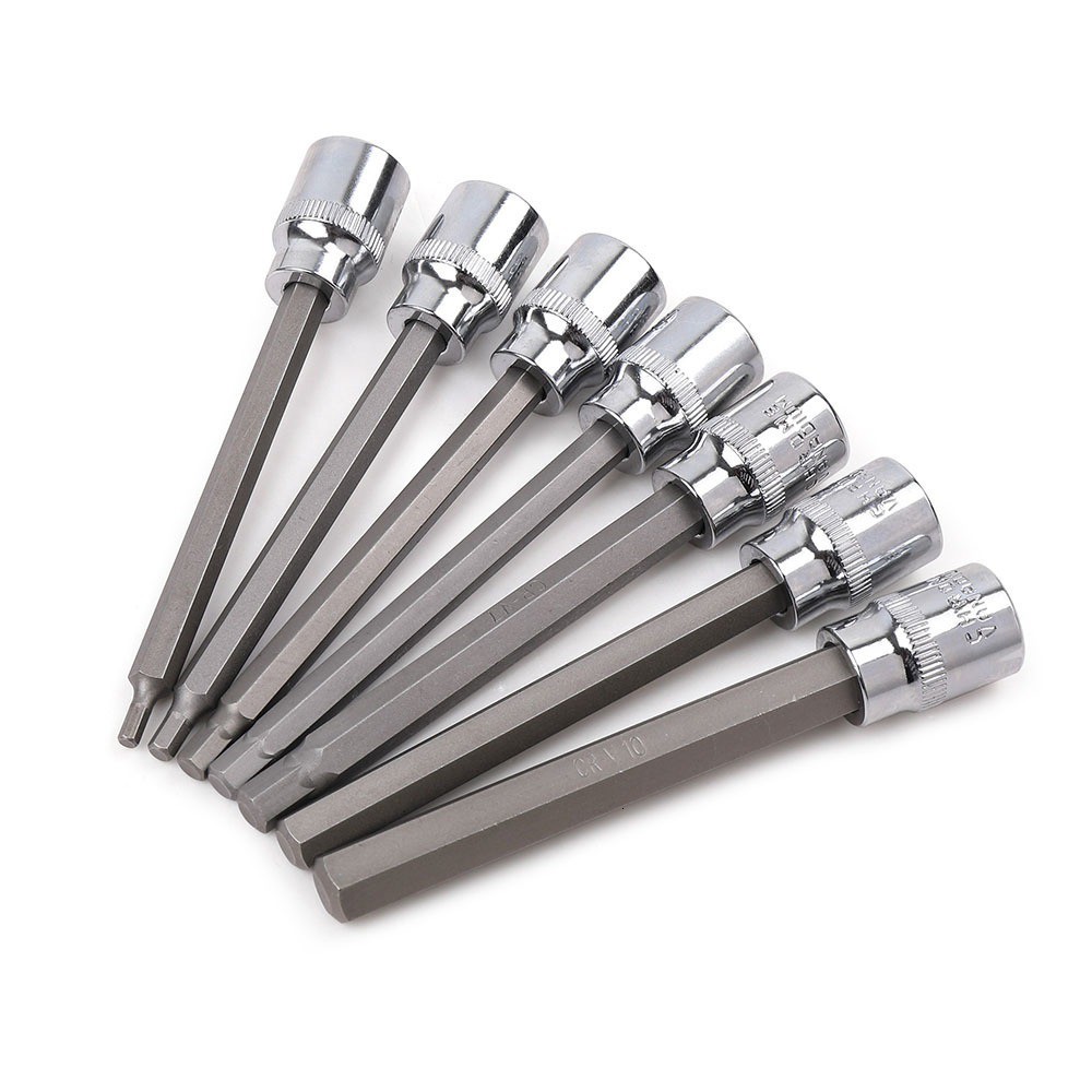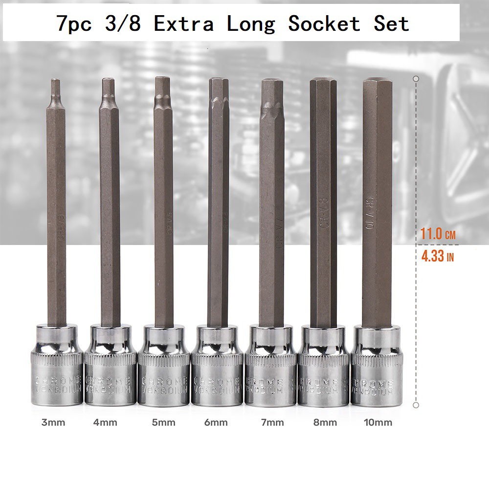 7pc 3/8 Extra Long Socket Set 110mm Socket Adatper for Torque Socket Wrench Hex Allen Key Screwdriver Bit Set 3-10mm