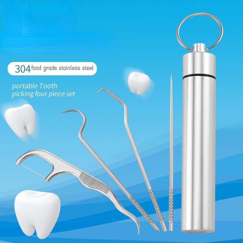 7pcs/1Set Toothpick Set Metal Stainless Steel Oral Cleaning Tooth Flossing Portable Toothpick Floss Teeth Cleaner with Storage Tube