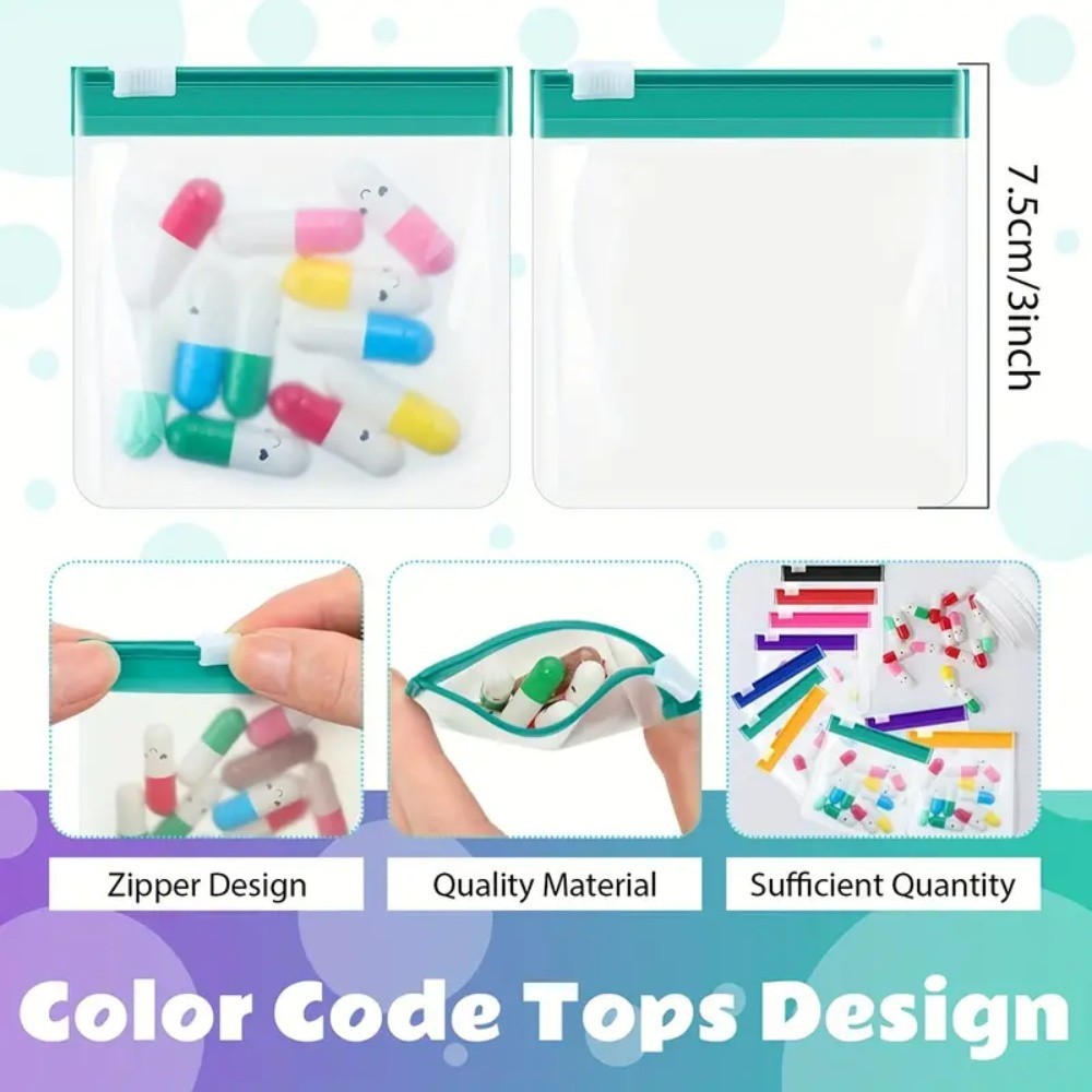 7pcs Clear Reusable Pill Pouch Pill Bags Display Packaging Portable Self Sealing EVA Ring Storage Holder Bag