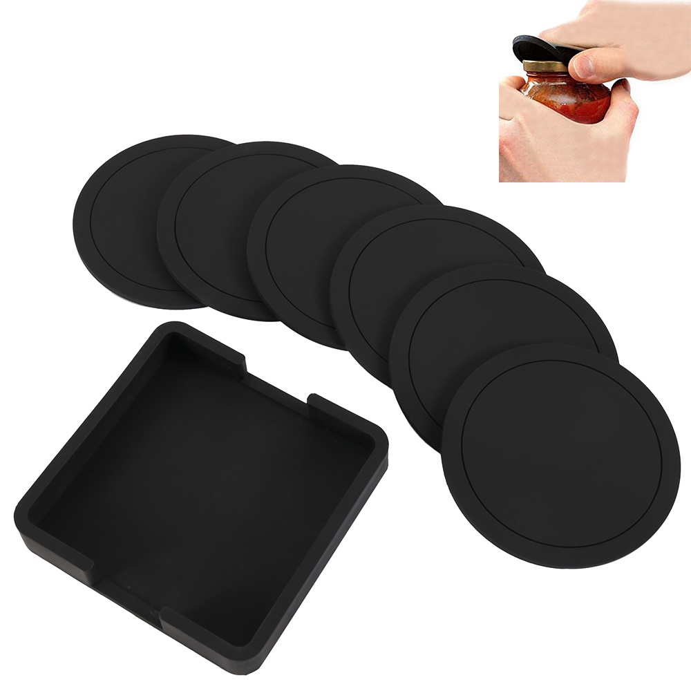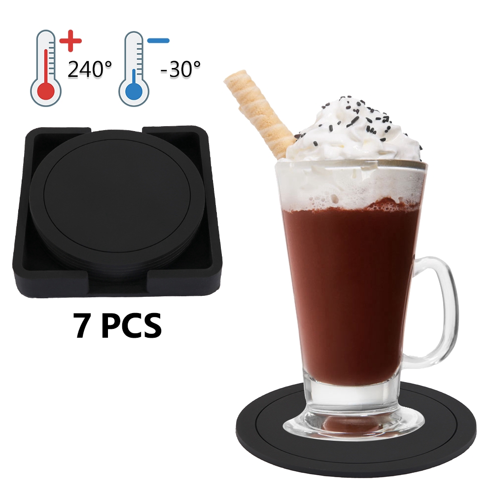7pcs Coasters Round Shape Thicken Non Slip Silicone Rubber Drink Coasters For Coffee Beer Mug Wine Glass Bottle