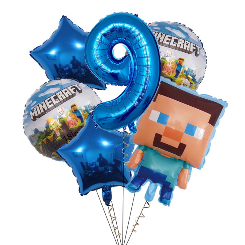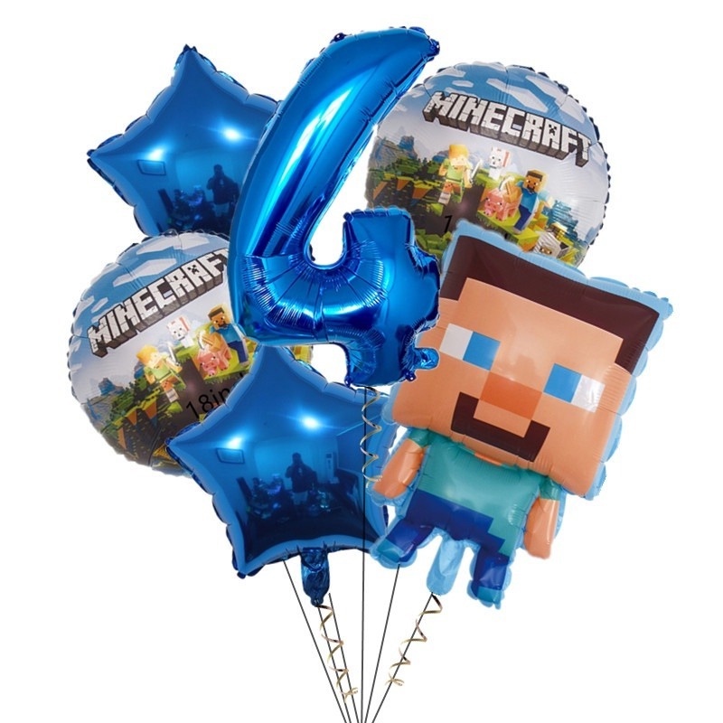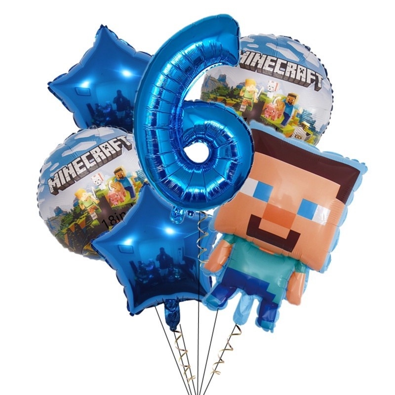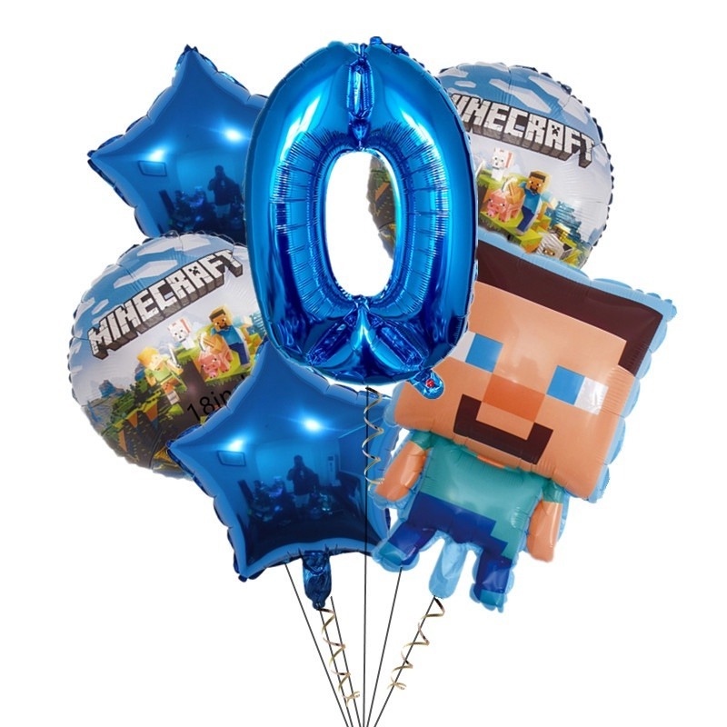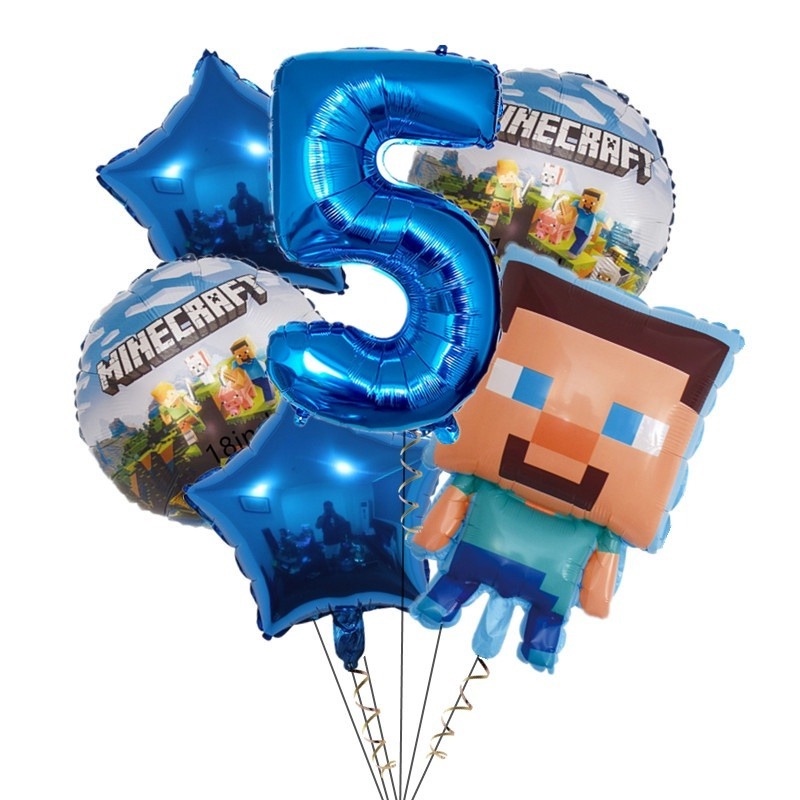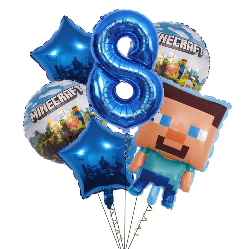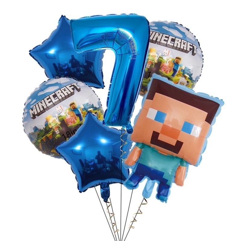 7pcs Minecraft Pixel Wars Foil Balloons Happy Birthday Decoration Steve Minecraft Themed Latex Balloons Kids Biethday Gife