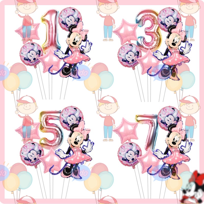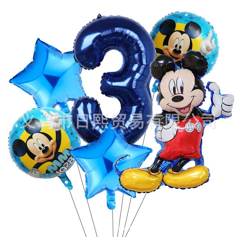 7pcs/set Mickey Mouse Birthday Decoration Set Minnie Mickey Aluminum Balloon 1-9 Number Balloon Baby Shower Party Needs