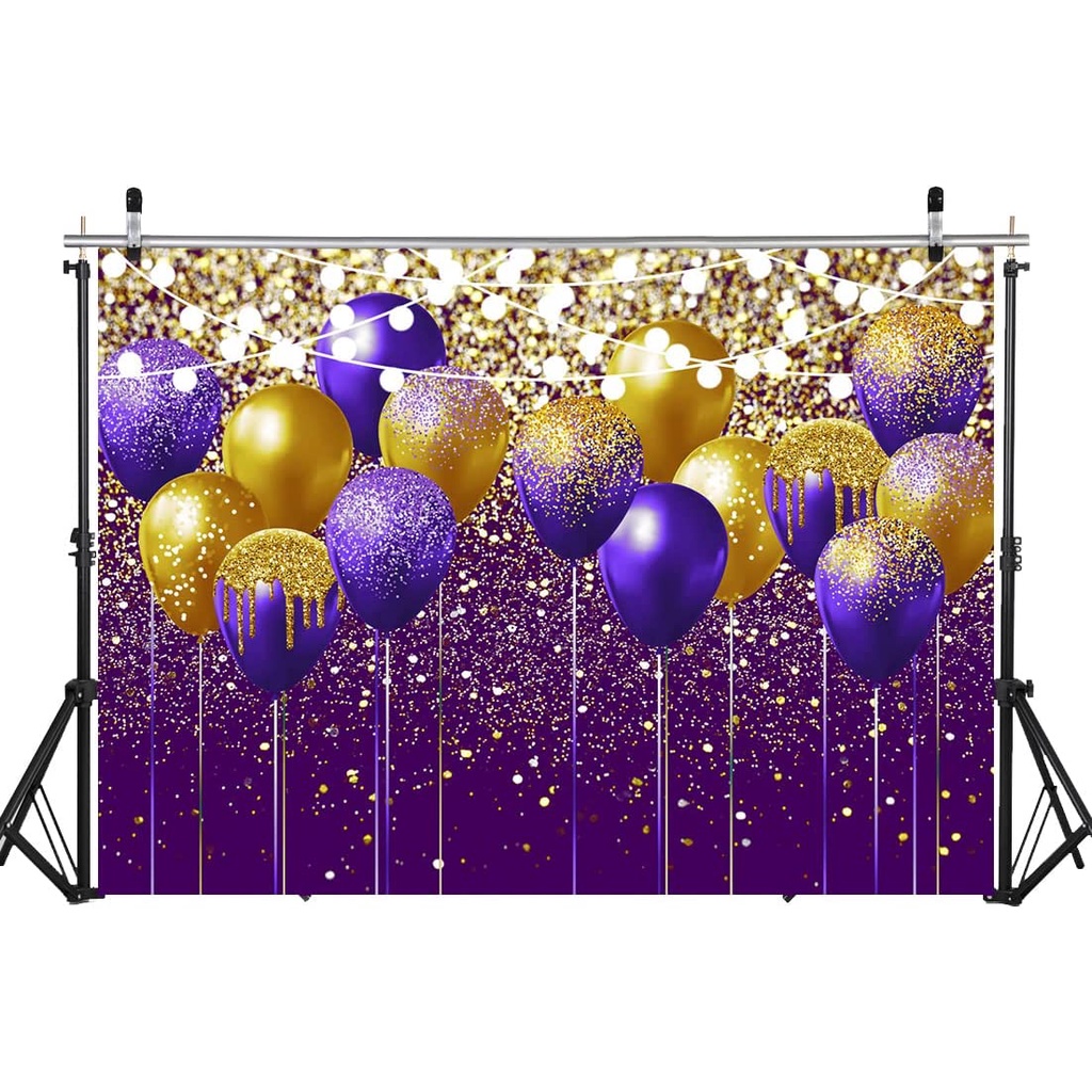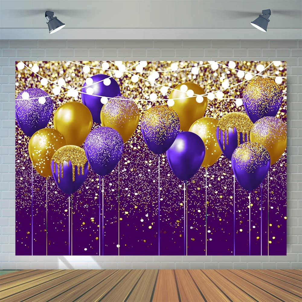 7x5FT Purple Bokeh Backdrop Happy Birthday Party Backdrop Banner Purple Glitter Backdrop Purple Balloon Birthday Party Photoshoot Background Purple and Gold Decorations
