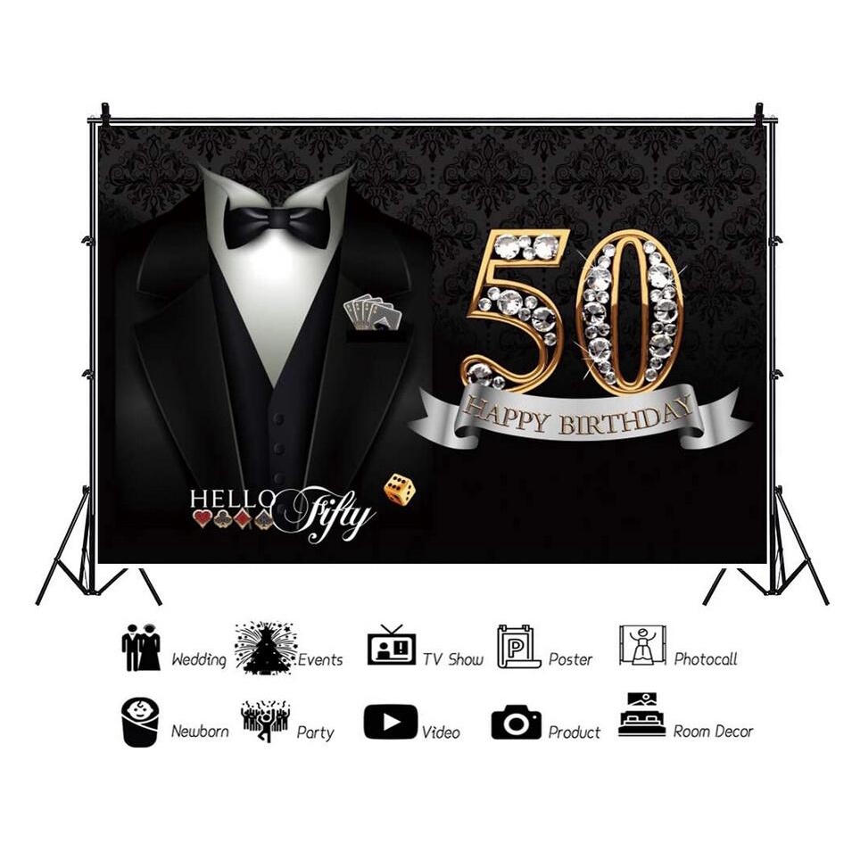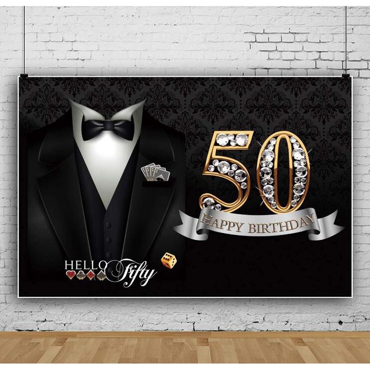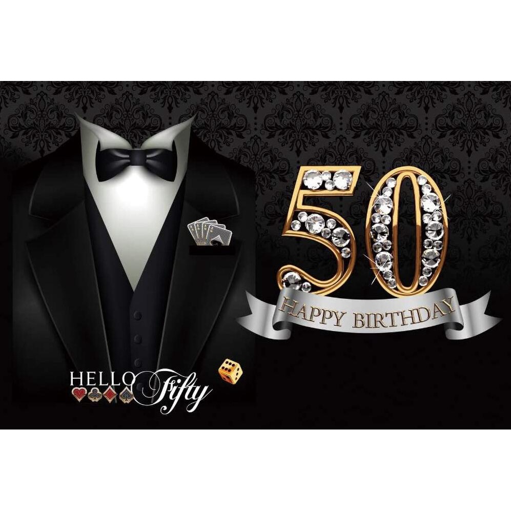 7x5ft Photography Backdrop for Man 50th Happy Birthday Necktie Suit Tuxedo Clothes Father Man Gentleman Birthday Party Photo Background Banner Decor Portrait Shoot Studio Props