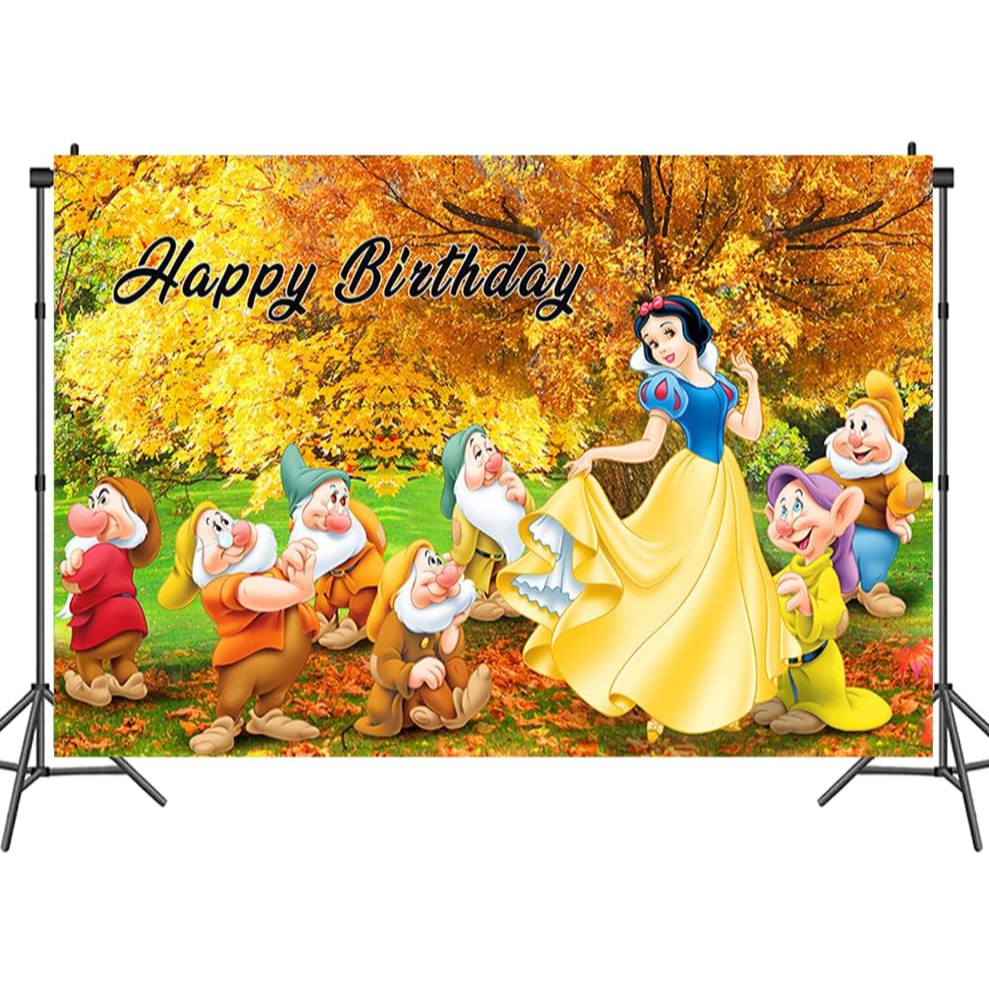 7x5ft Snow White and The Seven Dwarfs Photography Backdrop Girls Birthday Party Decoration Photo Background Banner Fairy Tale Party Wall Decoration Princess Photo Backdrop