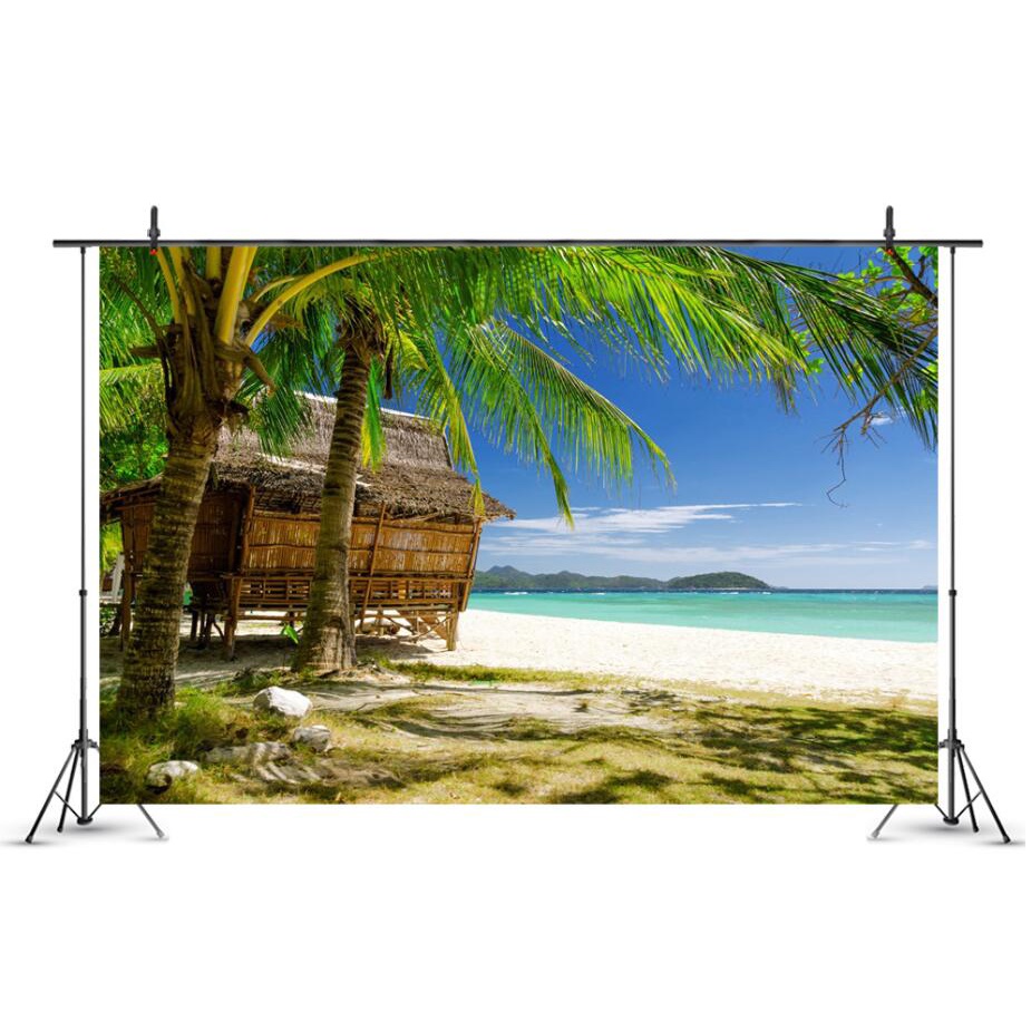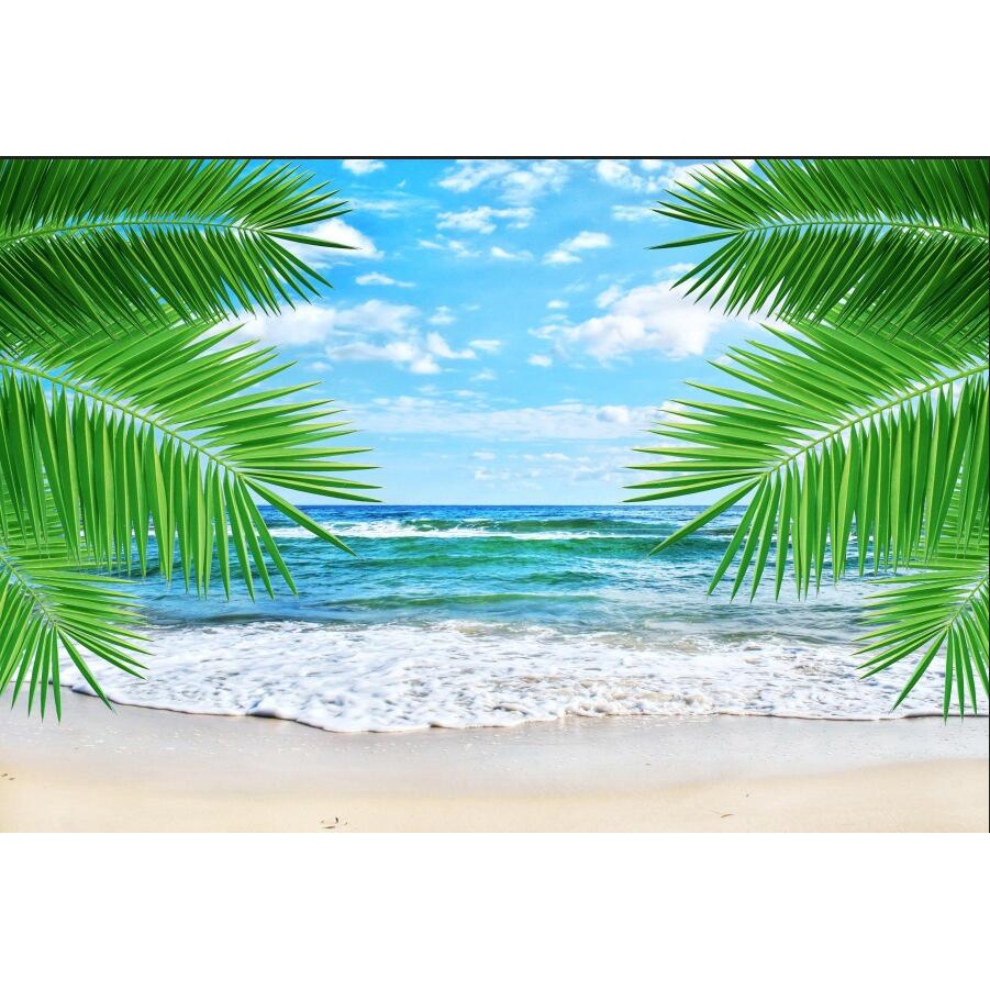 7x5ft Tropical Beach Palm Leaf Backdrop Blue Sky White Cloud Photography Background Living Room Decoration Backdrops Banner