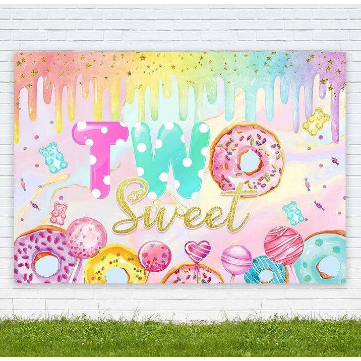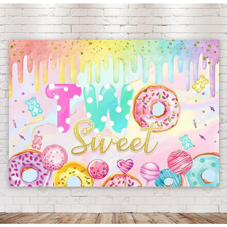 7x5ft Two Sweet Donut Birthday Backdrop for Girls Sweet Candy Second Bday Rainbow Colorful Watercolor Party Photography Background Decor Banner Studio Photo Shoot