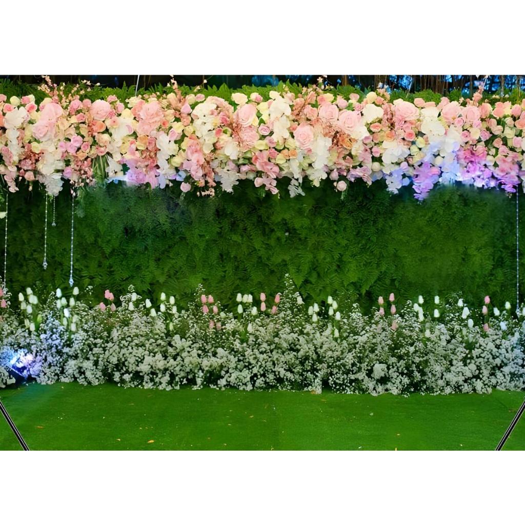 7x5ft Wedding Backdrop for Ceremony Greenery Floral Backdrop Green Leaves Grass Flowers Wall Photography Background Bridal Shower Birthday Party Decorations Photo Studio Prop