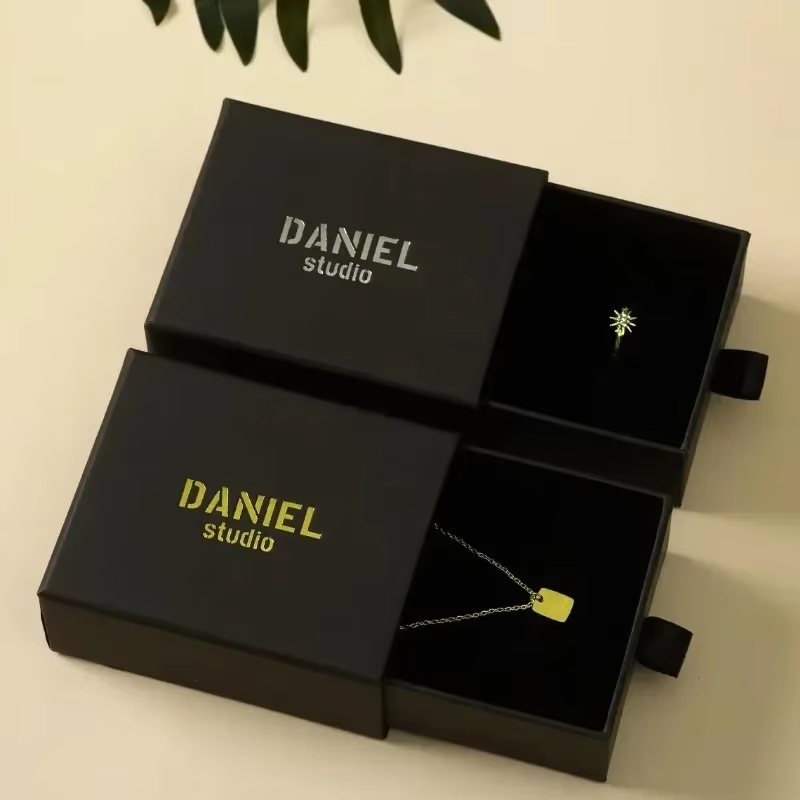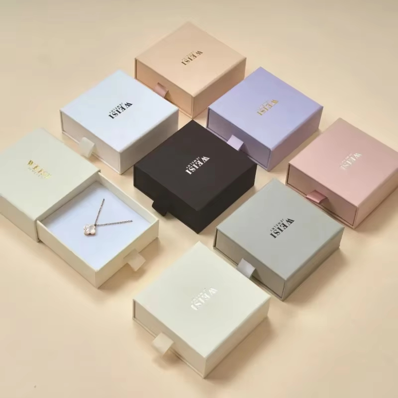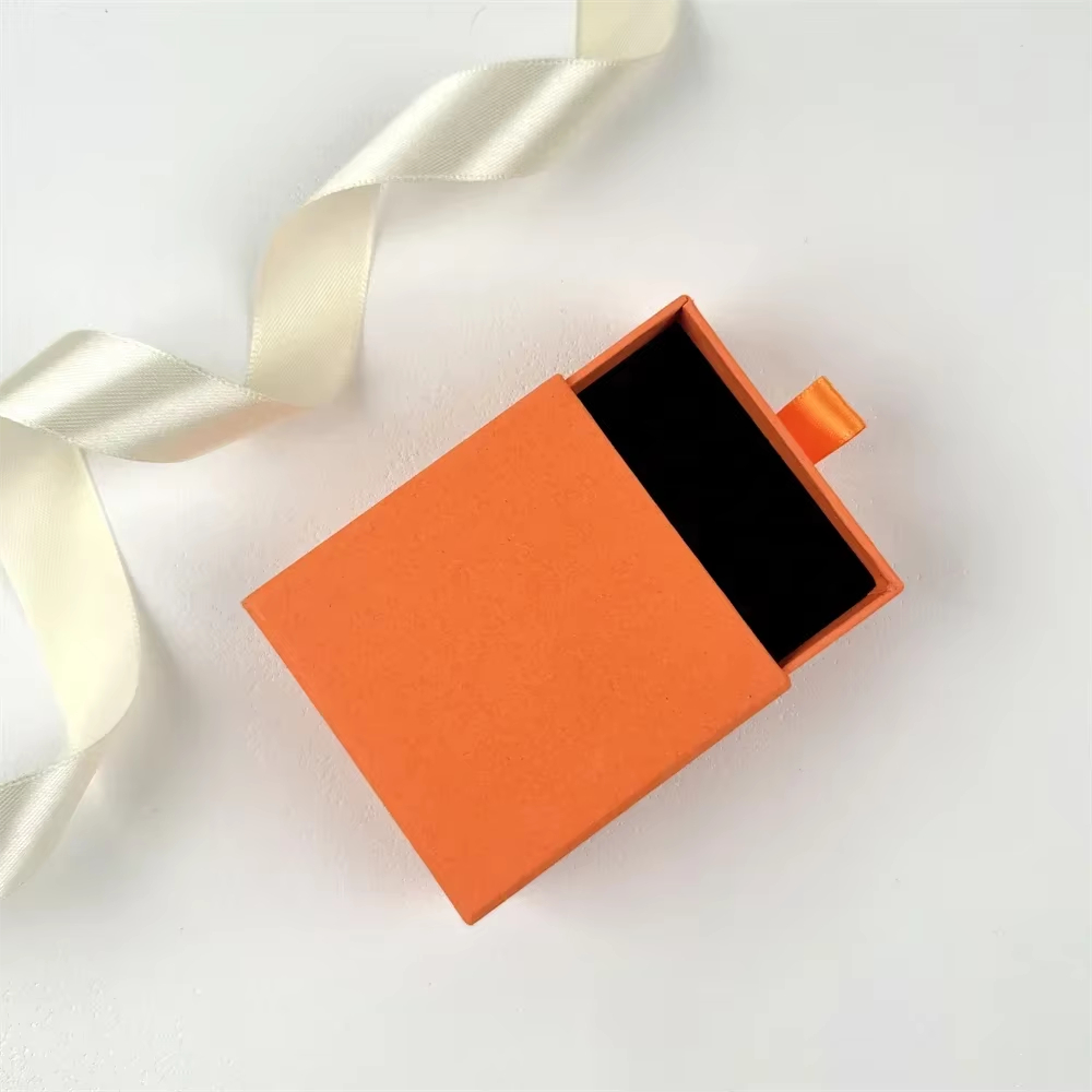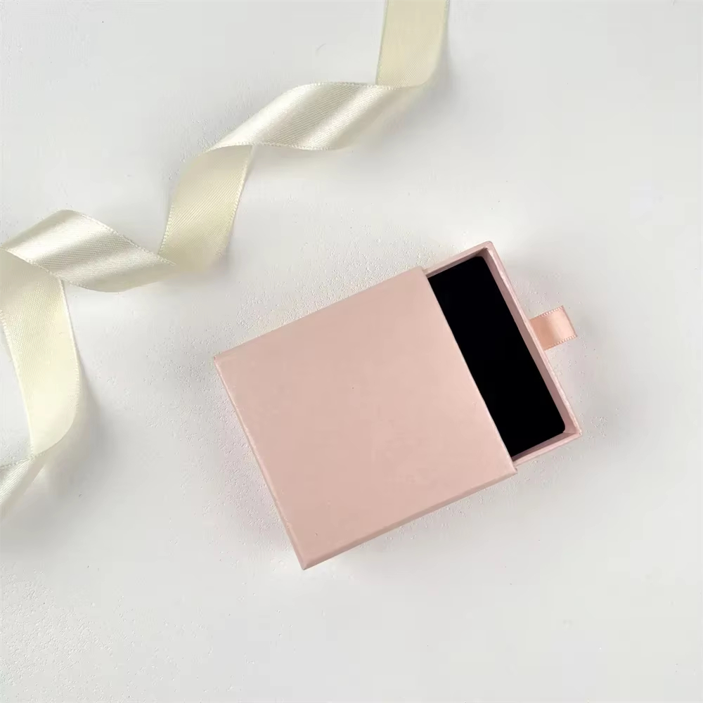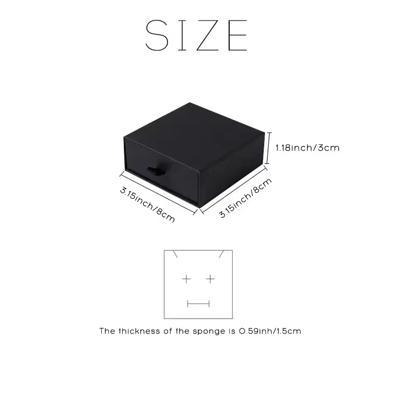 8*8*3cm Drawer Box Personalized Logo Print Jewelry Packaging Gift Cardboard Silde Case DIY Wedding Favor Box With Velvet Sponge