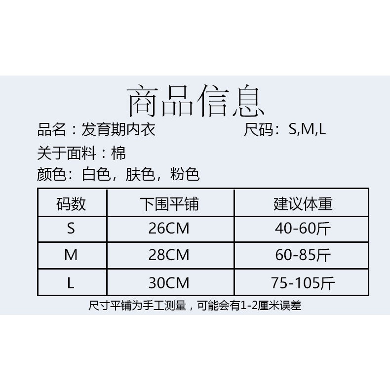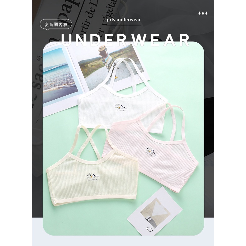 8-10-12 Years Old Development Period Teen Baby Bra Girl Primary School Student Pure Cotton Soft Solid Color Base Ride Vest Child Girl Bra Students Underwear