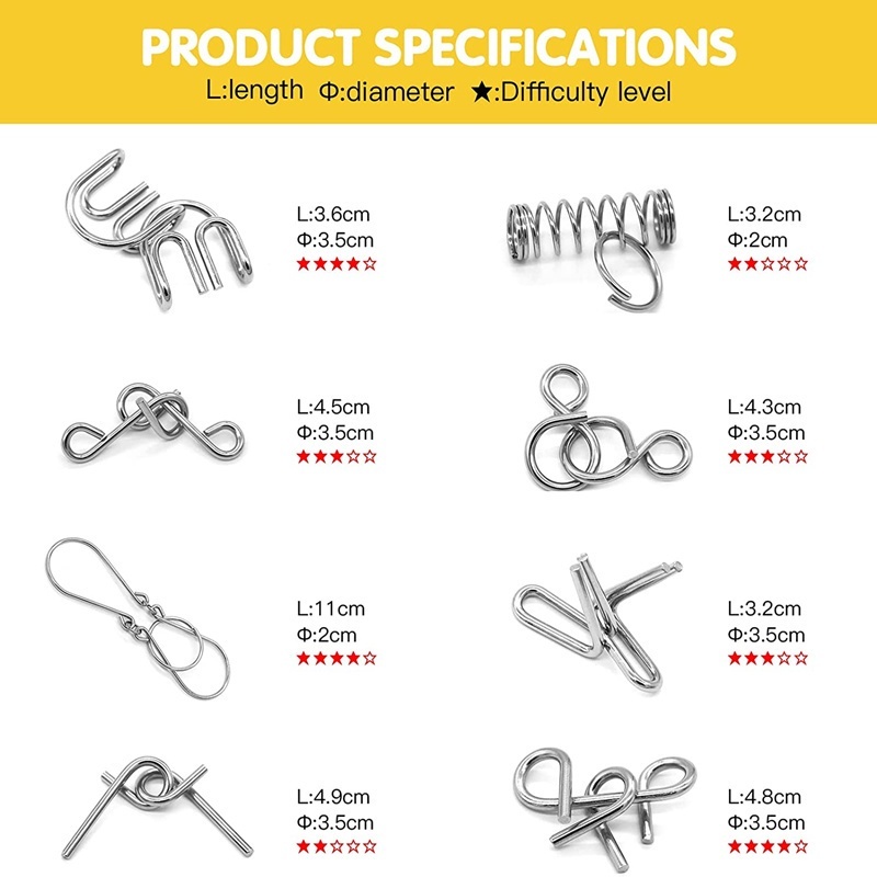 8/24pcs Metal Wire Puzzle Set Logical Thinking Development Metal Link Unlock Interlock Toys for Kids Adults