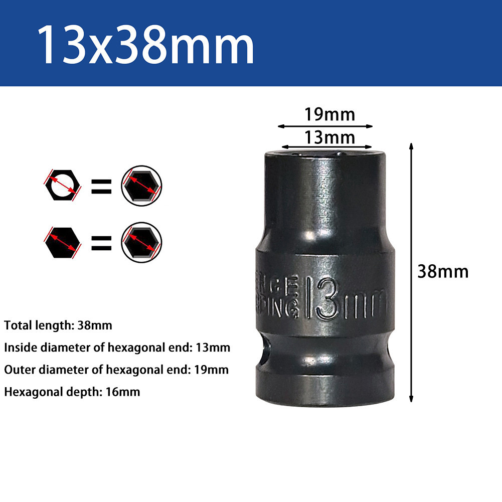 8-32mm Short Impact Wrench Socket Driver Head 6Point 1/2inch Adapter Tire Repair