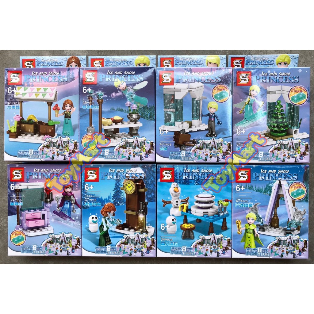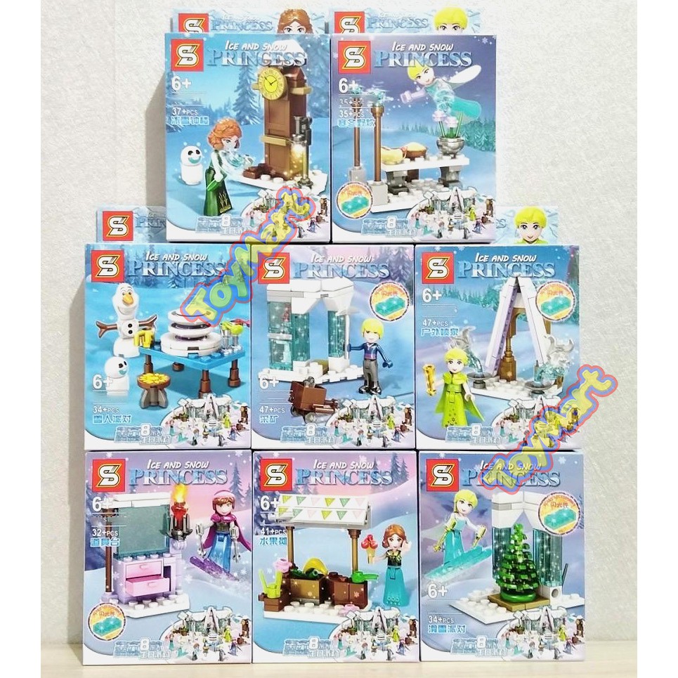 8 Boxes Snow Princess Blocks Ice and Snow Minifigure Princess Anna Elsa Snowman Play Set