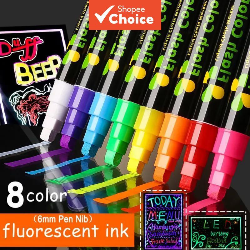8-Color Liquid Chalk Markers - Washable Wet Erase Neon Pens for Blackboard, Glass & Car Signs
