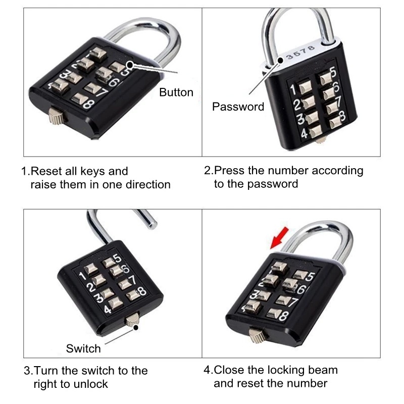 8 Digital Security Padlock Code Keyed Anti-thieft Combination Padlock Button Security Padlock