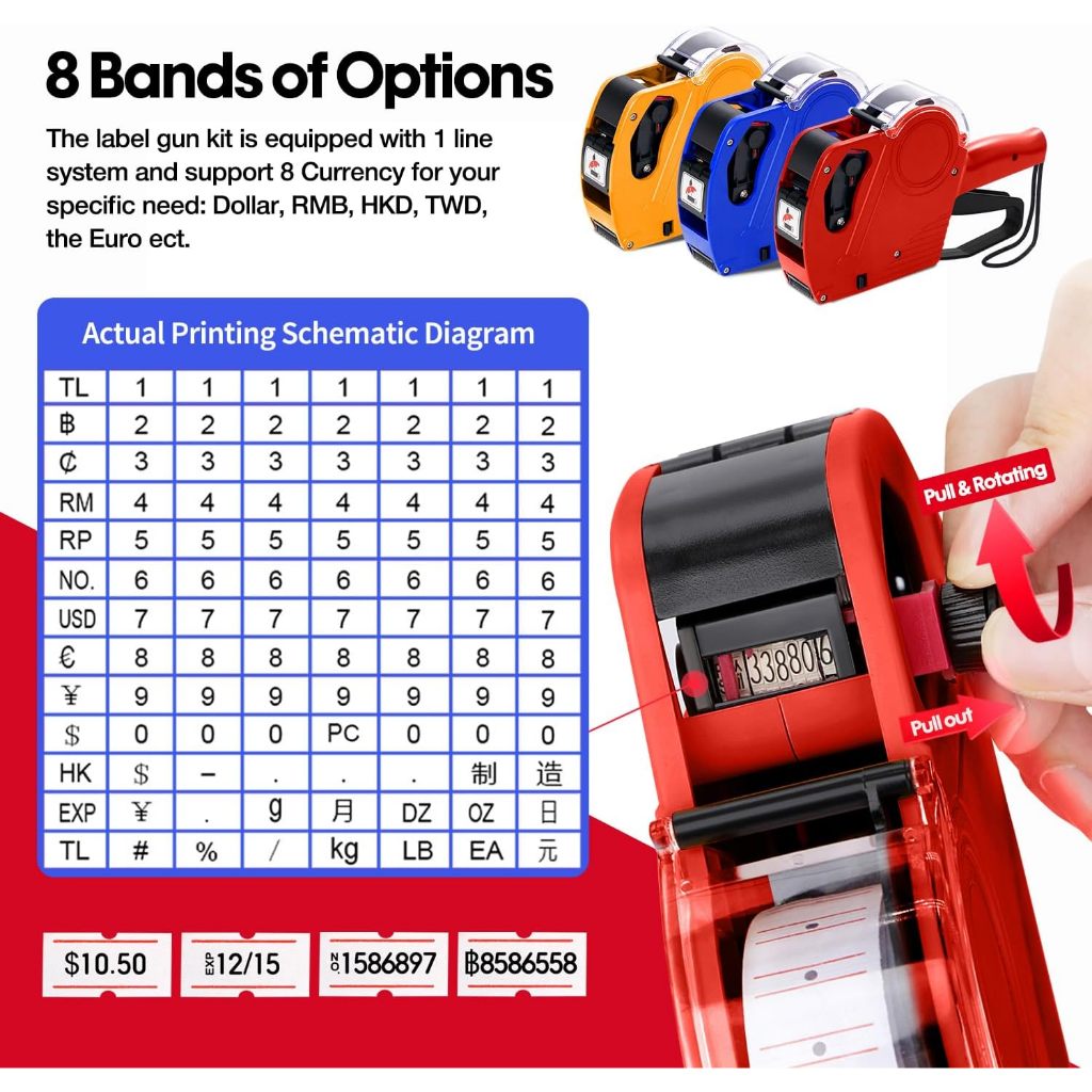 8 Digits Price Tag Gun Crown Price Labeller With Labels Introductory package Price Tag Sticker Label