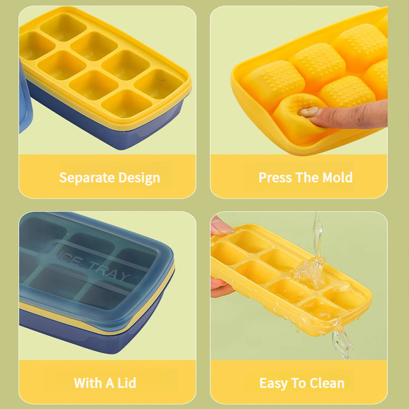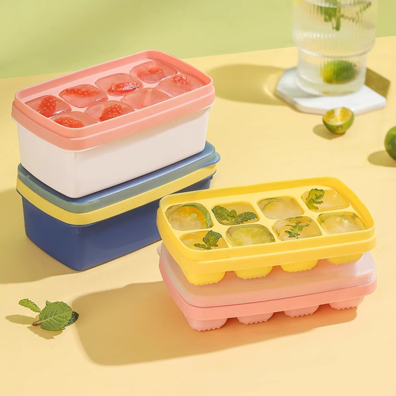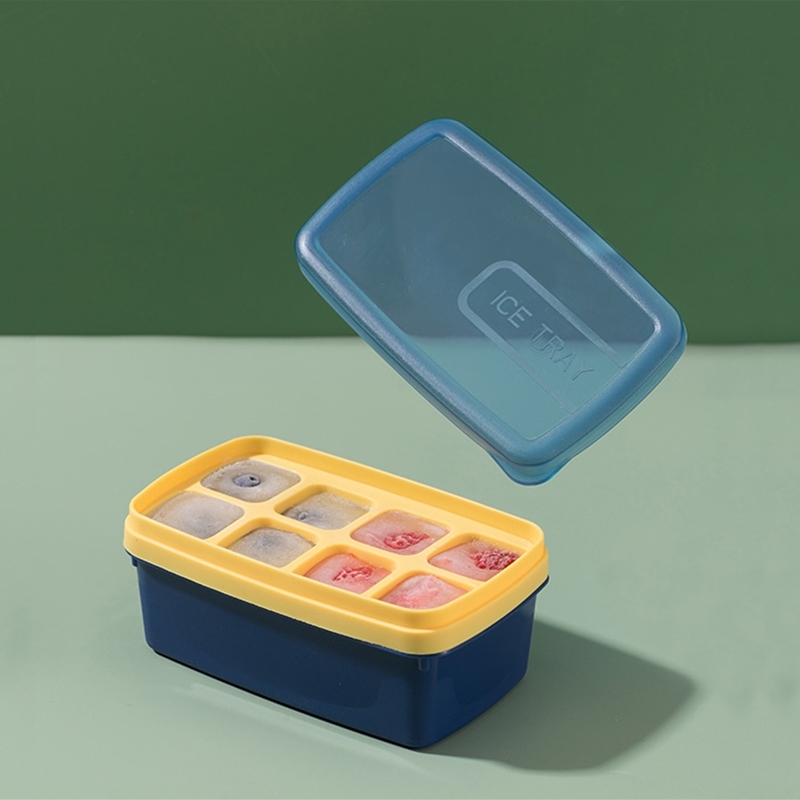 8 Grids Kitchen Ice Cube Molder Tray Fruit Popsicle Maker with Lid Easy-Release DIY Ice Jelly Mold