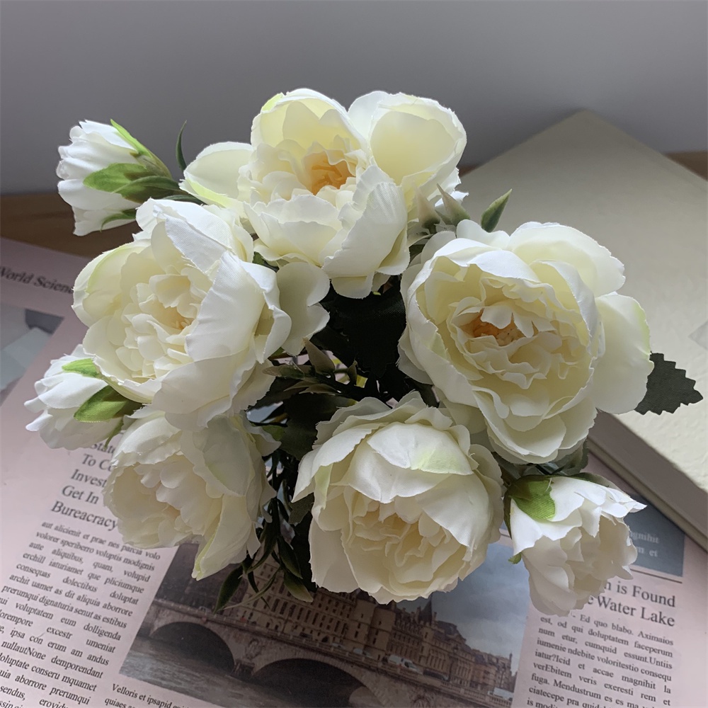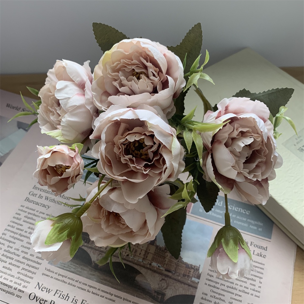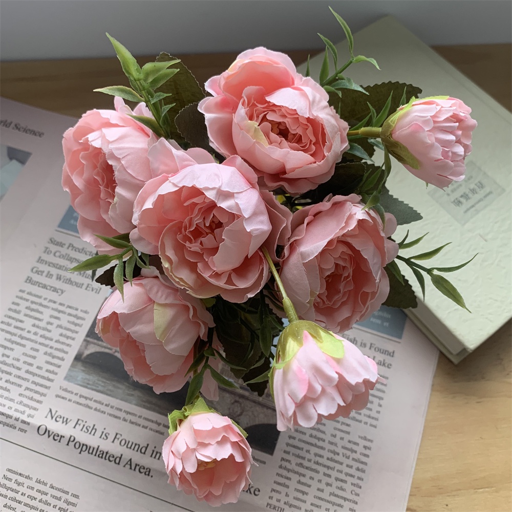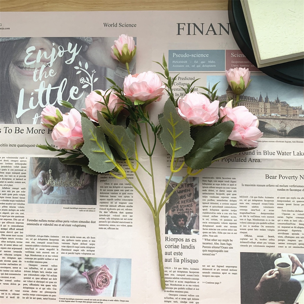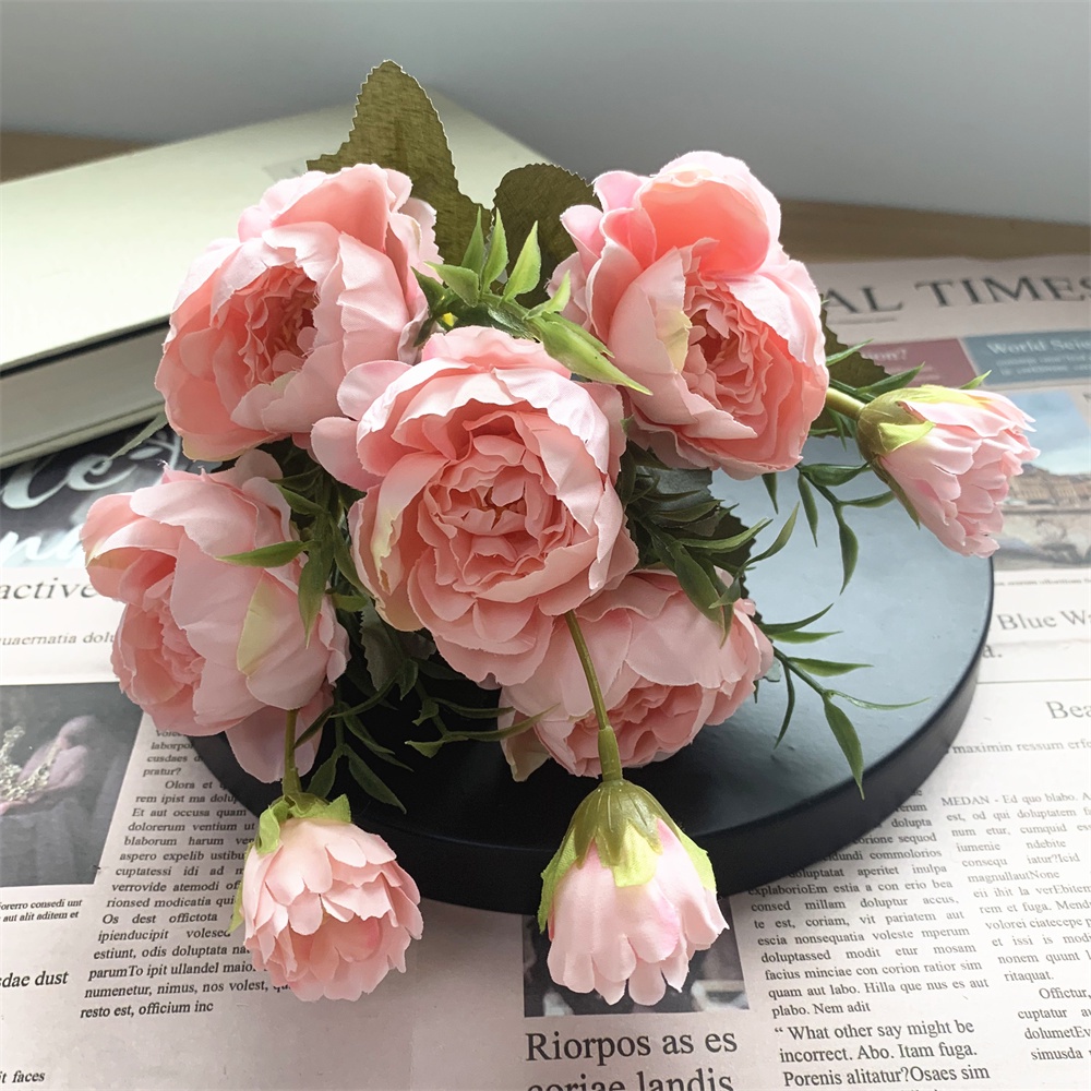 8 Head Arificial Fake Mini Penoy Rose Flower Bouqeut for Wedding Decoration Home Decor Plastic Flowers and Leaves