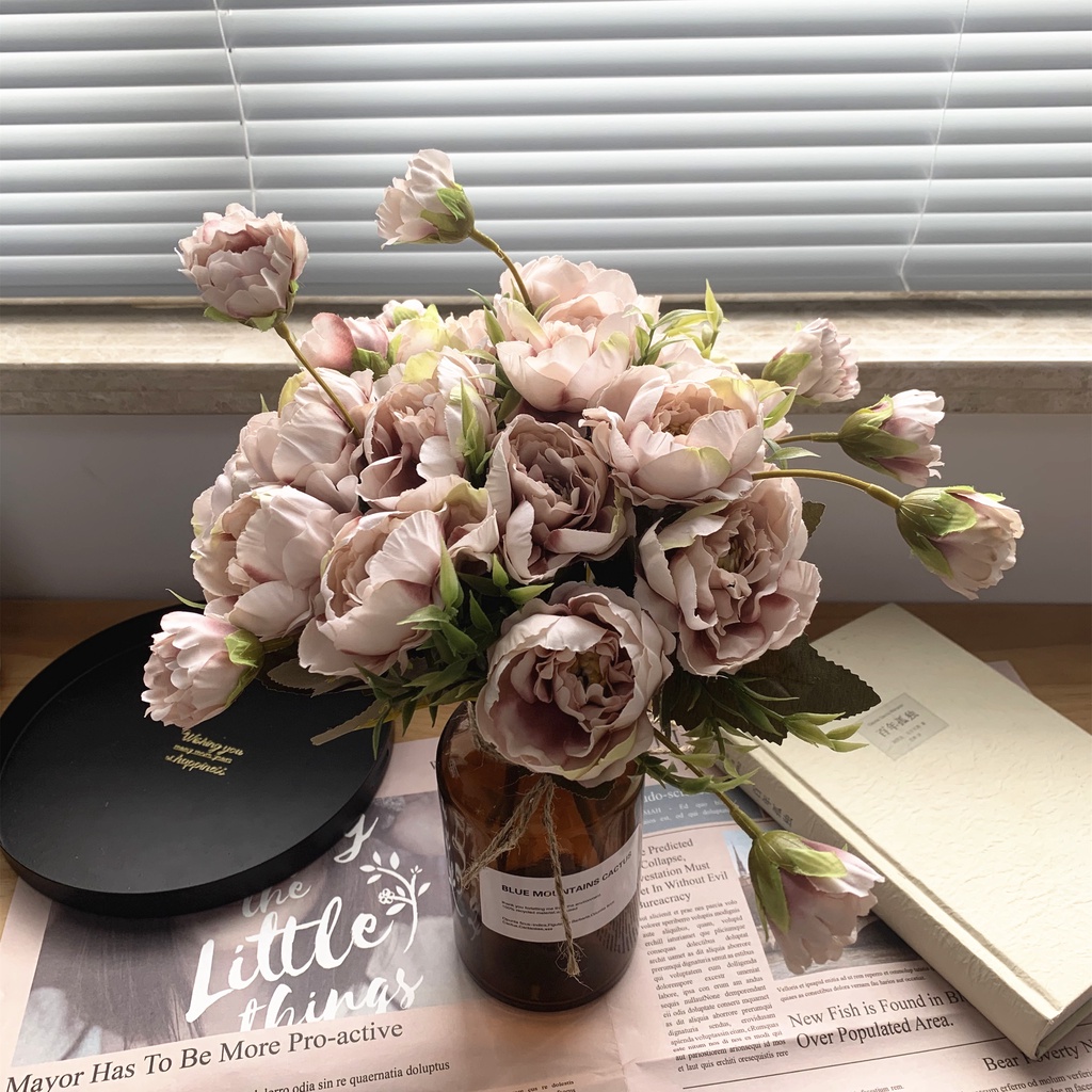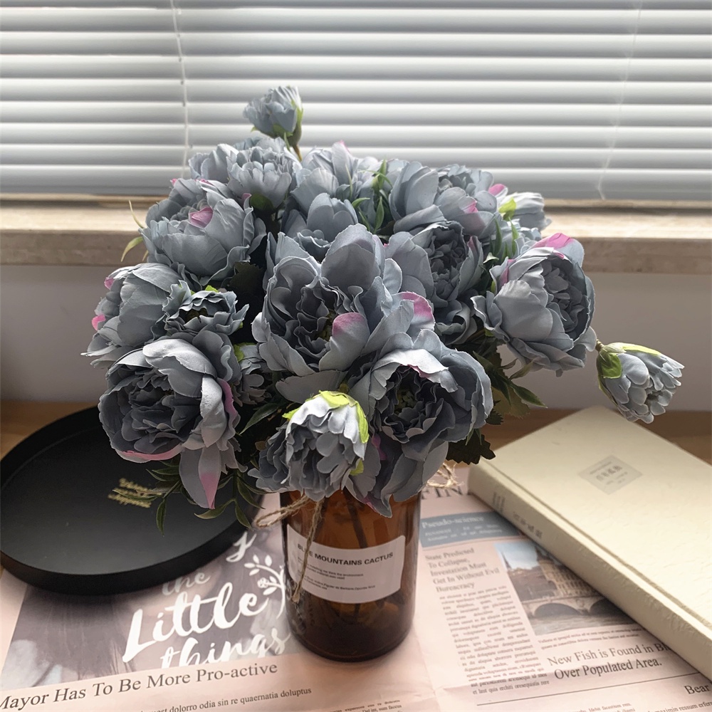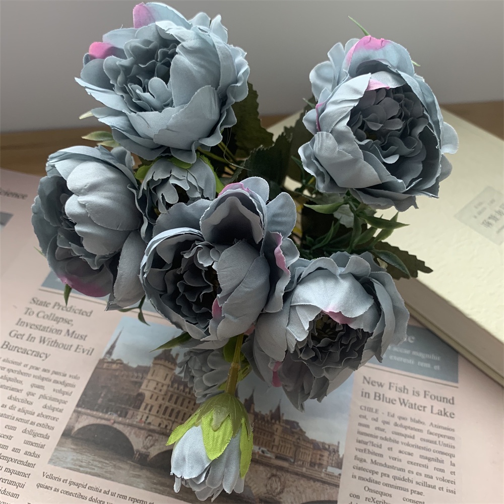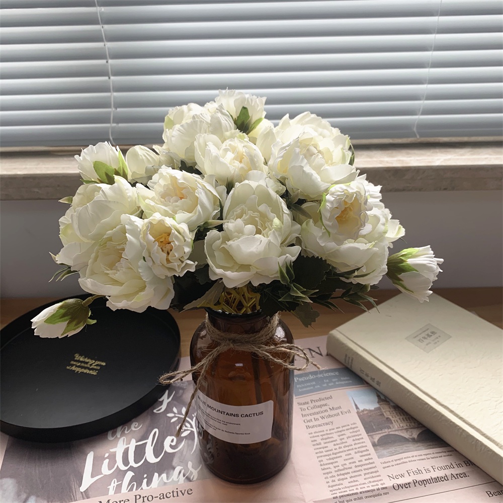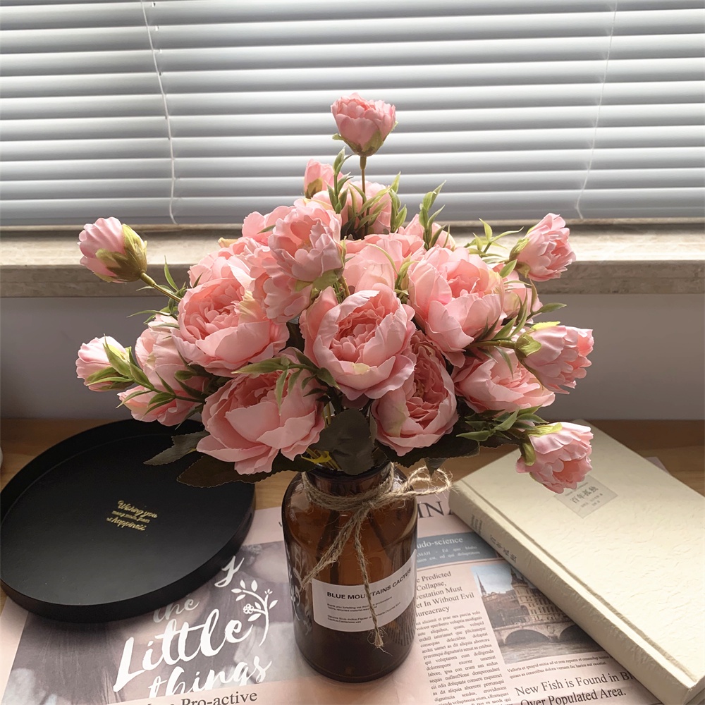 8 Head Arificial Fake Mini Penoy Rose Flower Bouqeut for Wedding Decoration Home Decor Plastic Flowers and Leaves