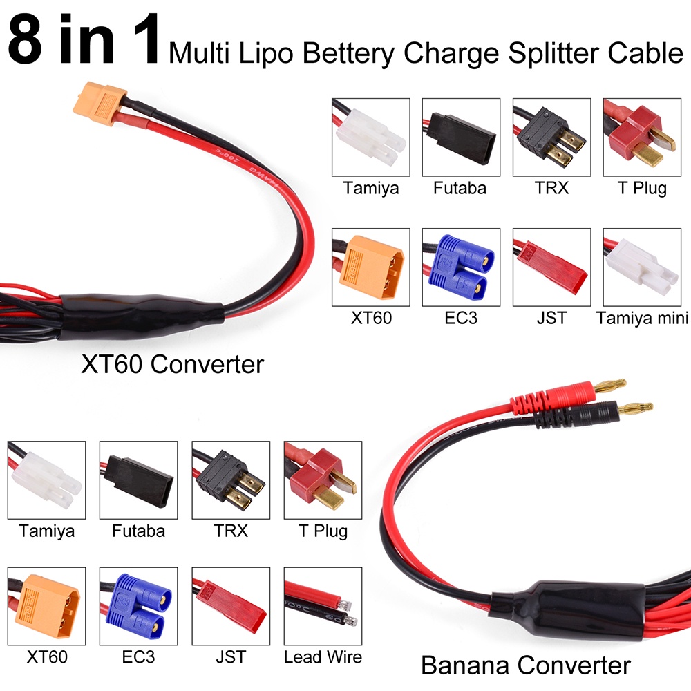 8 In 1 RC Lipo Battery Charger Adapter Connector Splitter Cable for Tamiya Futaba XT60 EC3 JST Lipo Battery RC Drone Imax B6 B6AC