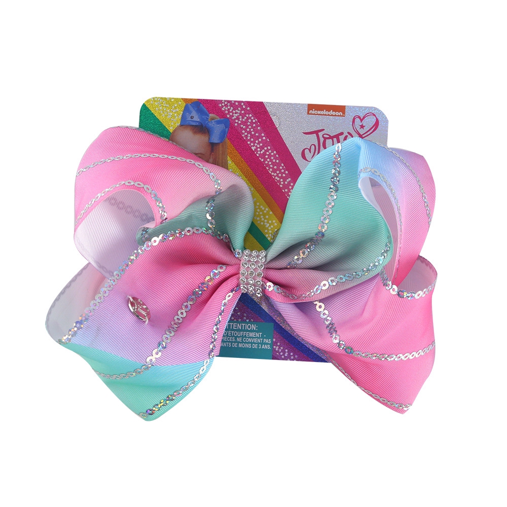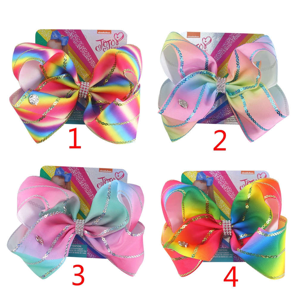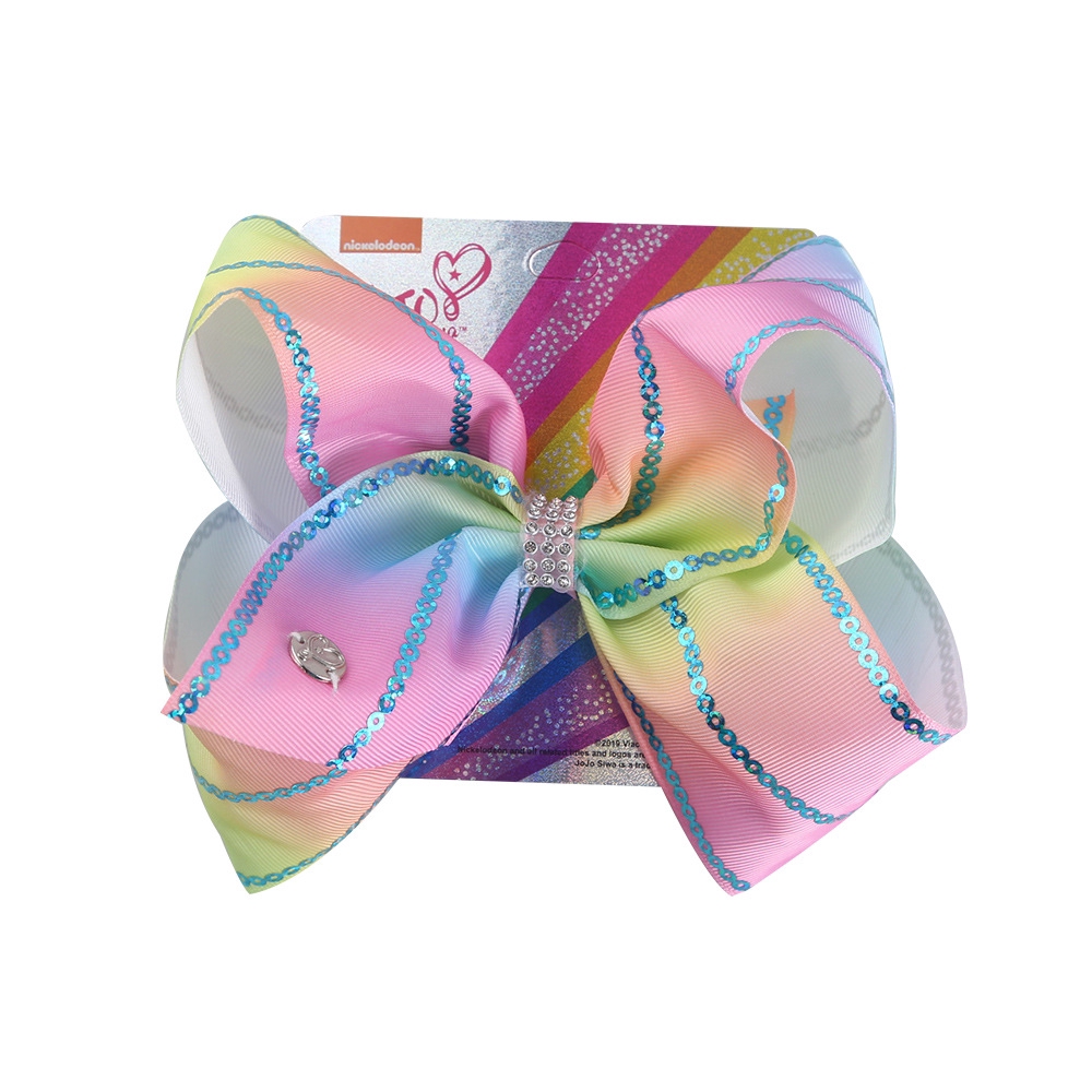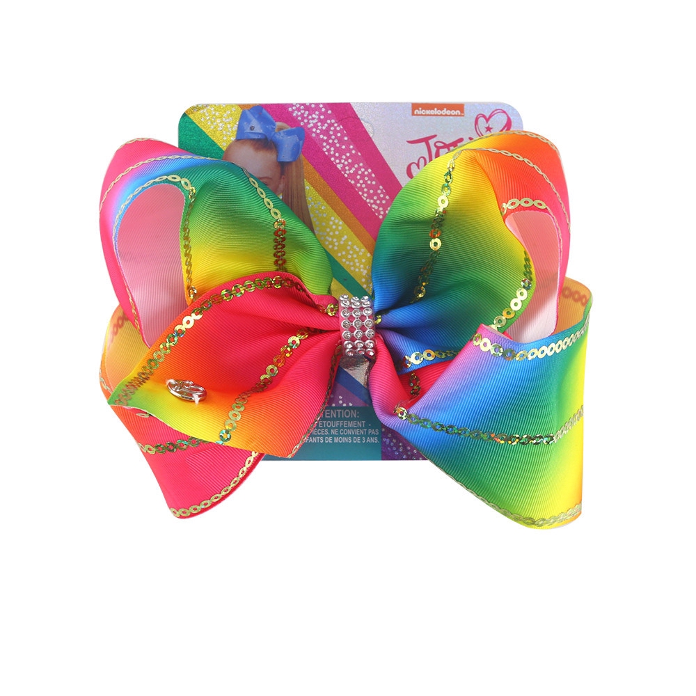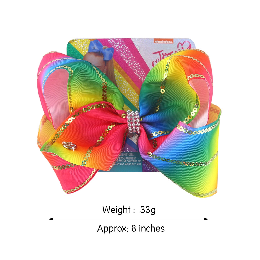 8 Inch JoJo Siwa Hair Bow Sequin Rhinestones Rainbow Hair Bows for Baby Girls Jojo Bow