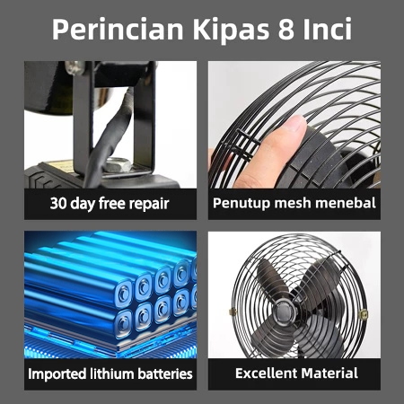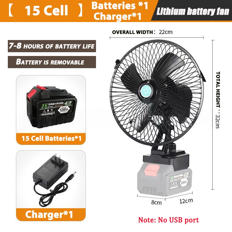 8-Inch Portable Lithium Battery Fan High Power Outdoor Cooling Fans Desktop Adjustable Cordless Fan