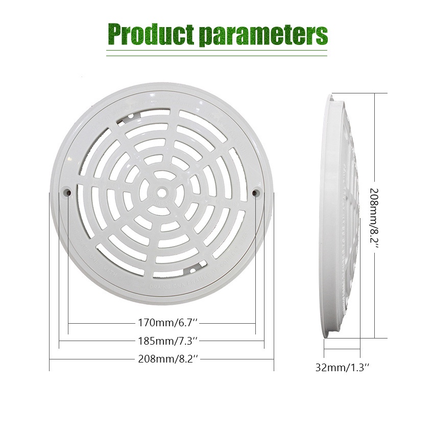 8 Inch Swimming Pool Drain Cover Replacement Main Drainage Port Cover Water Filter Cap (With Screws)