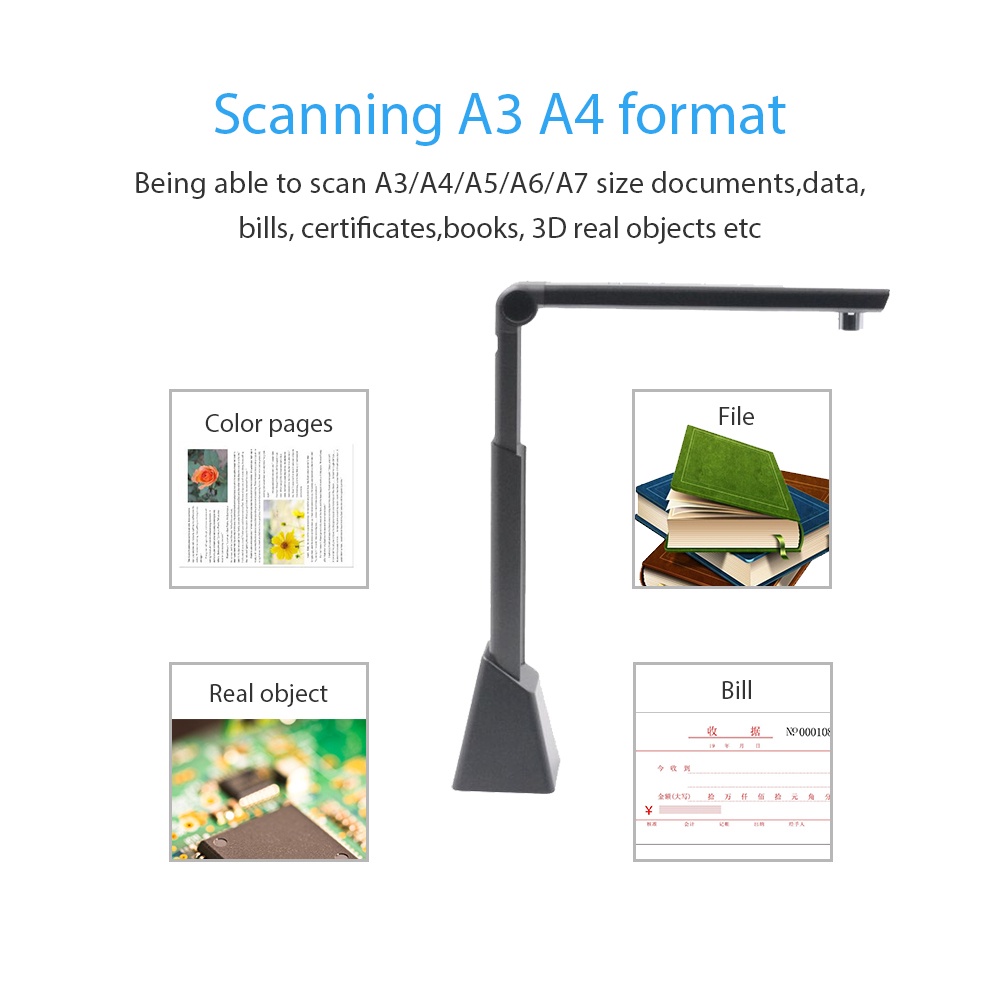 8 Mega-pixel High Definition Doc Scanner Capture Size A4 Document Camera for File Recognition Scanner High-definition Scanner