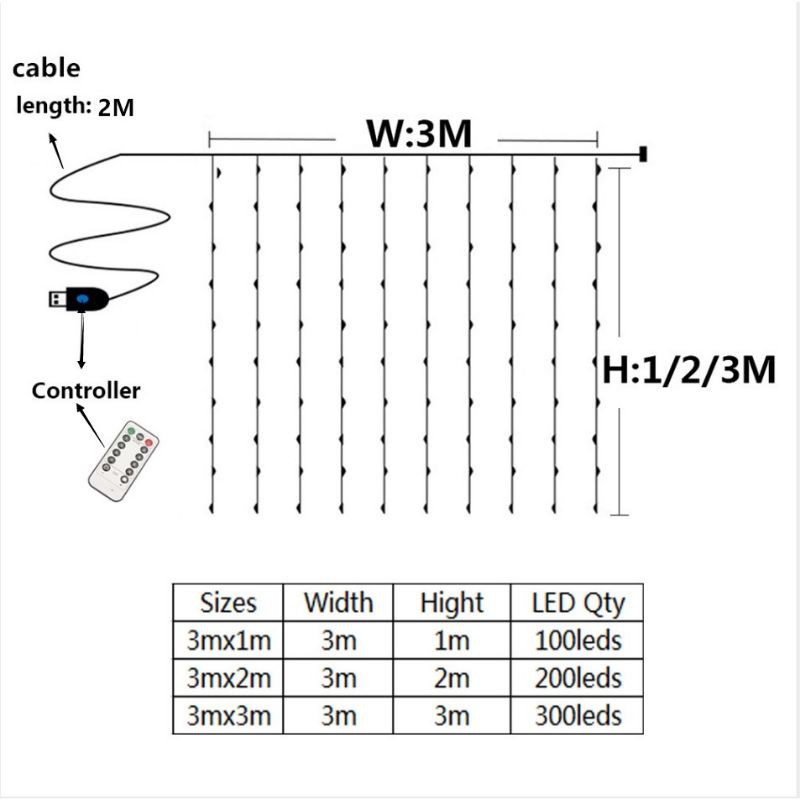 Fairy light 8 Modes 100/200/300LED USB Curtain String Lights Night Light Bedroom Decoration For Raya Wedding Christmas Light