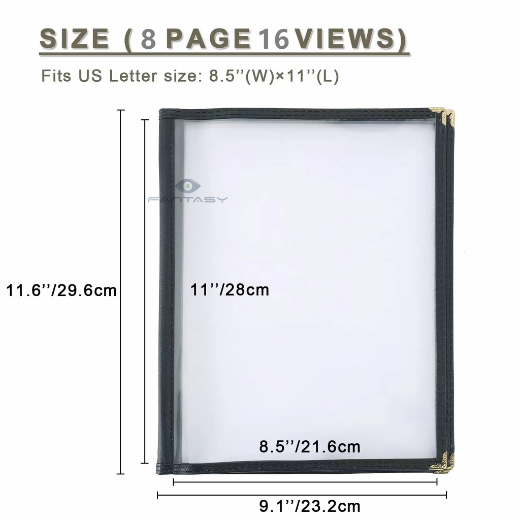 8 Pages 16 Faces A4 Transparent Menu Covers Restaurant Menu Folder Menu Book Price List Holder BLACK