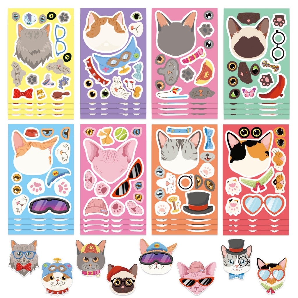 8Sheets/set super mario Stickers DIY Sticker Make A Face Assemble Jigsaw Puzzle Stickers kids gift
