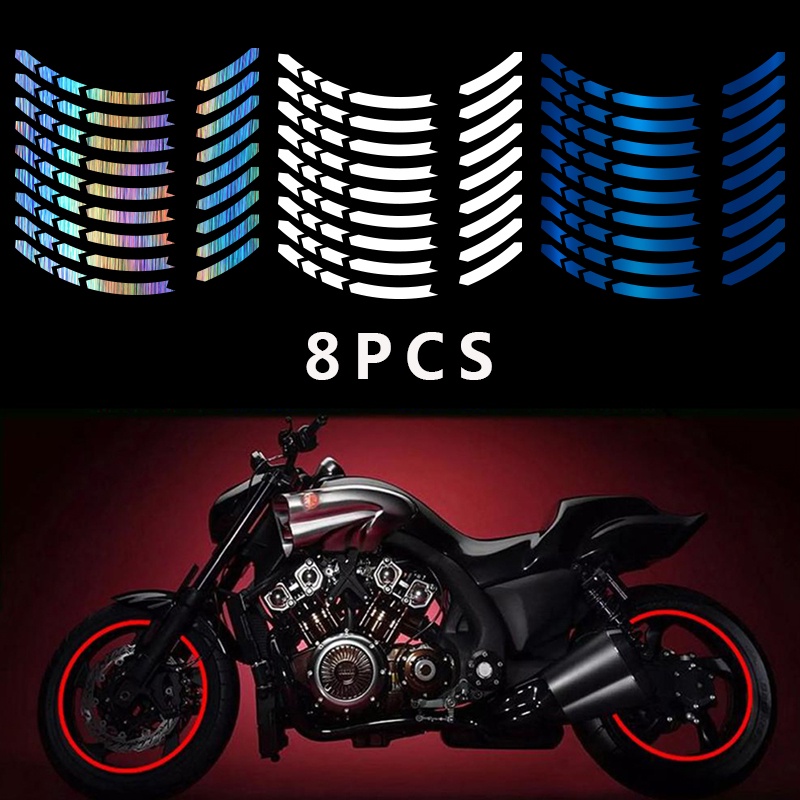 8 Strips for 15 17 18 inch wheel Motorcycle Wheel Sticker Reflective Motor Decals Rim Tape