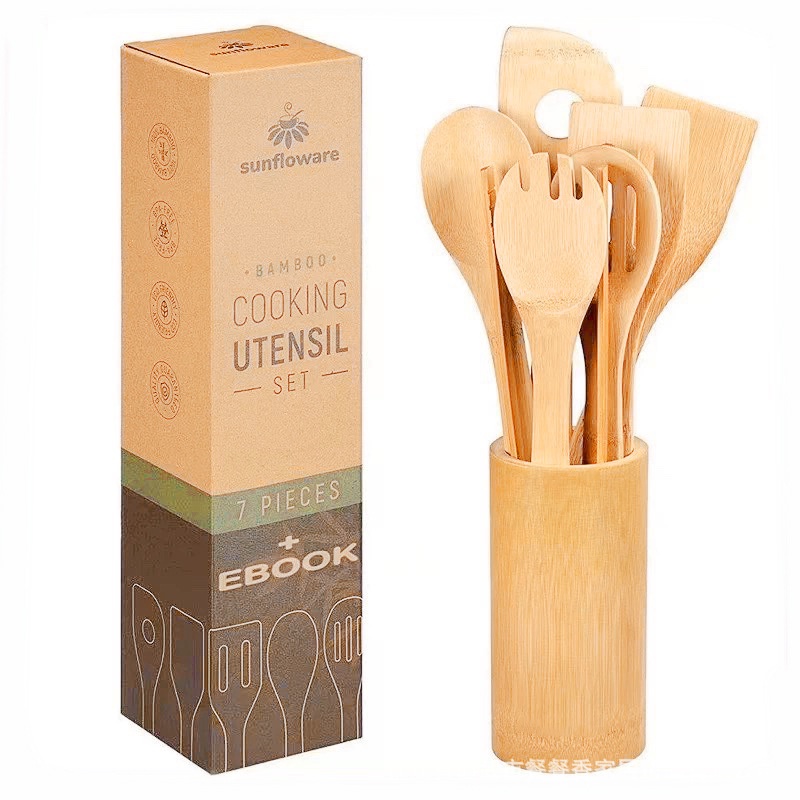 8 in 1 Eco Friendly-Bamboo Kitchen Utensil Set Tool Kitchenware (Bamboo Utensil Holder Included)