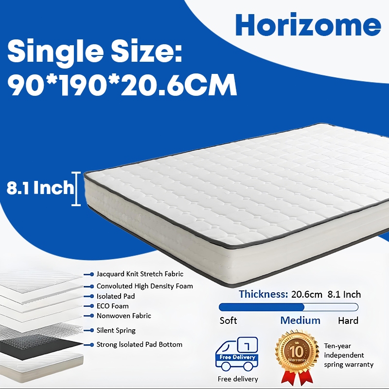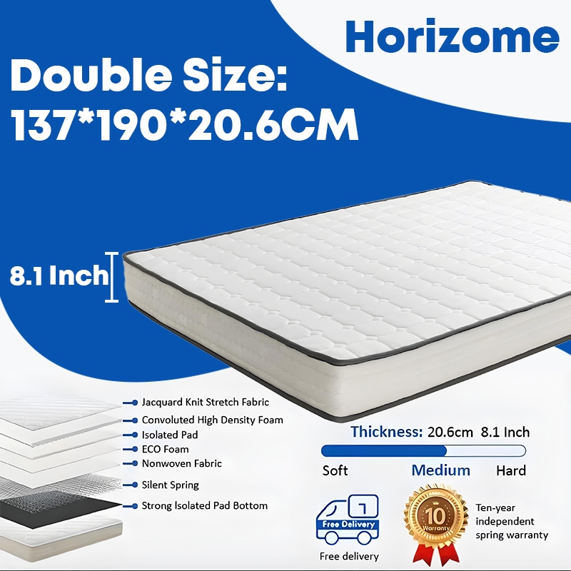 【Mega Discount】8.1 Inch lndependent Spring Mattress Ergonomic Mattress Single/Double/Queen/Famly Bed