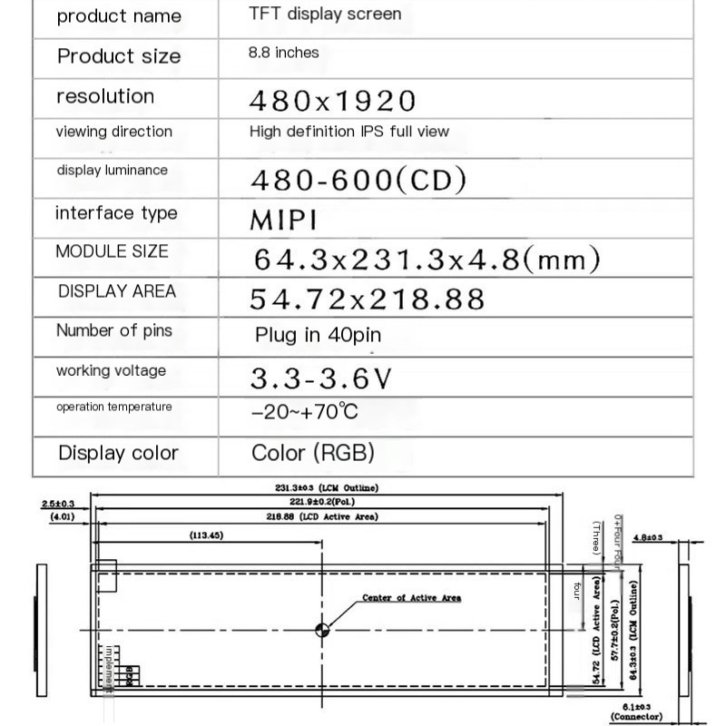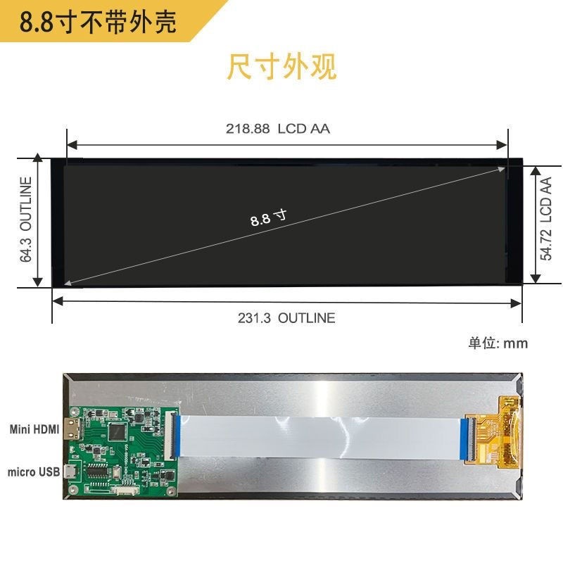 8.8 inch Screen Computer Chassis Side Screen Long Strip Monitor Touch AIDA64 Monitoring Raspberry Pie HDMI Portable Extension Screen IPS HD