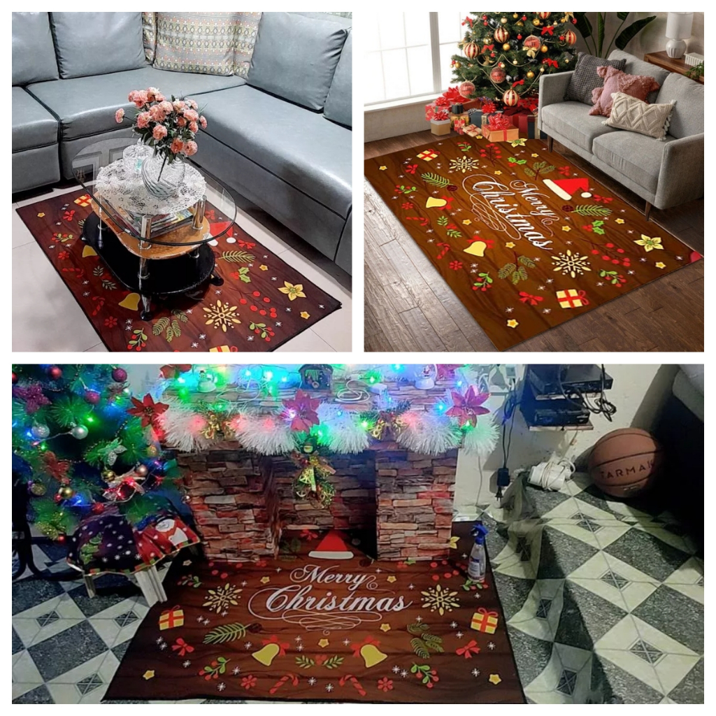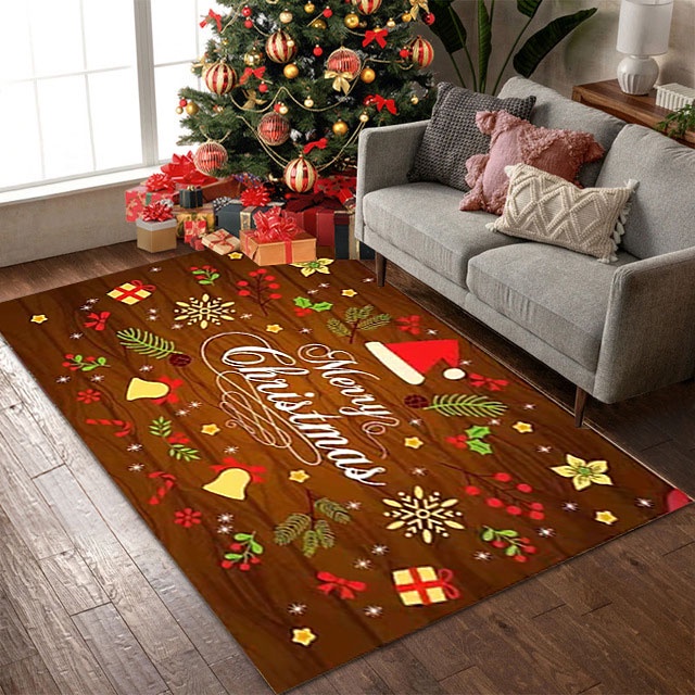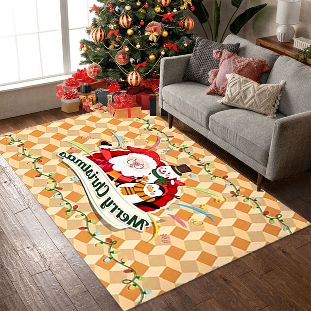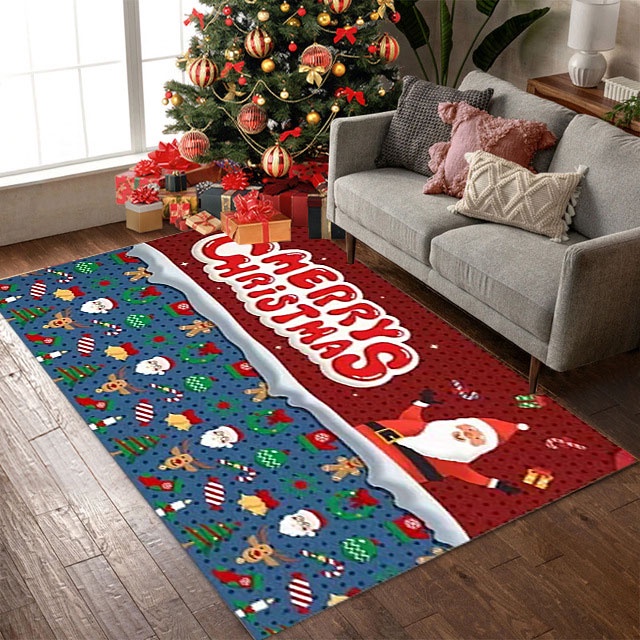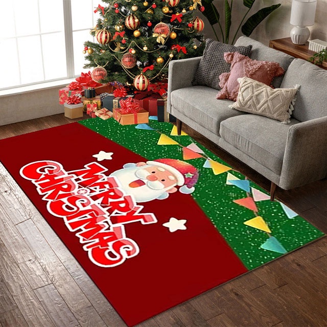 80*120cm Christmas Carpet Santa Claus Non-slip Living Room Carpet Kitchen Carpet Entrance Corridor
