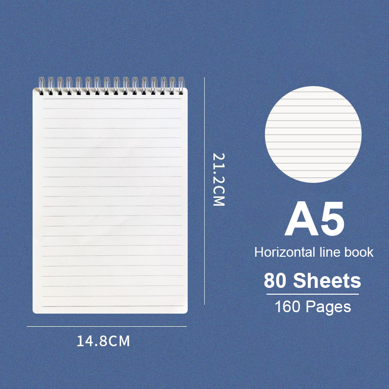 80 Sheets A5/B5 Coil Notebook Spiral Notebook Spring Horizontal Line Notebook Student Notebook
