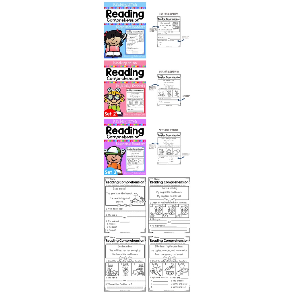 80 pages kids Kindergarten English Reading Comprehension book Worksheets practice Printables learning & education toys