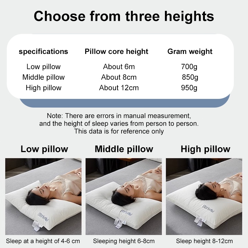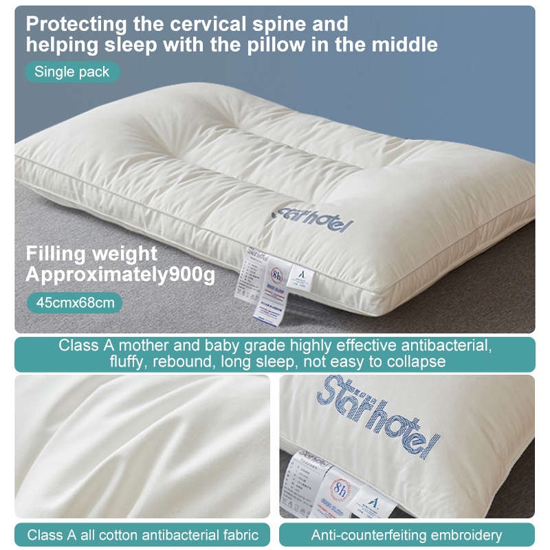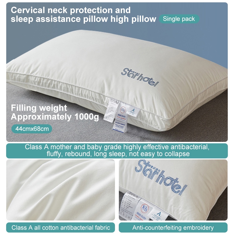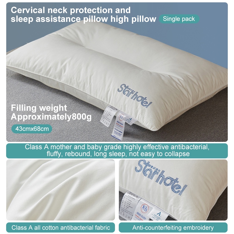 800/900/1000g Cotton antibacterial anti-mite pillow fluffy soft cervical spine aid-sleep unan